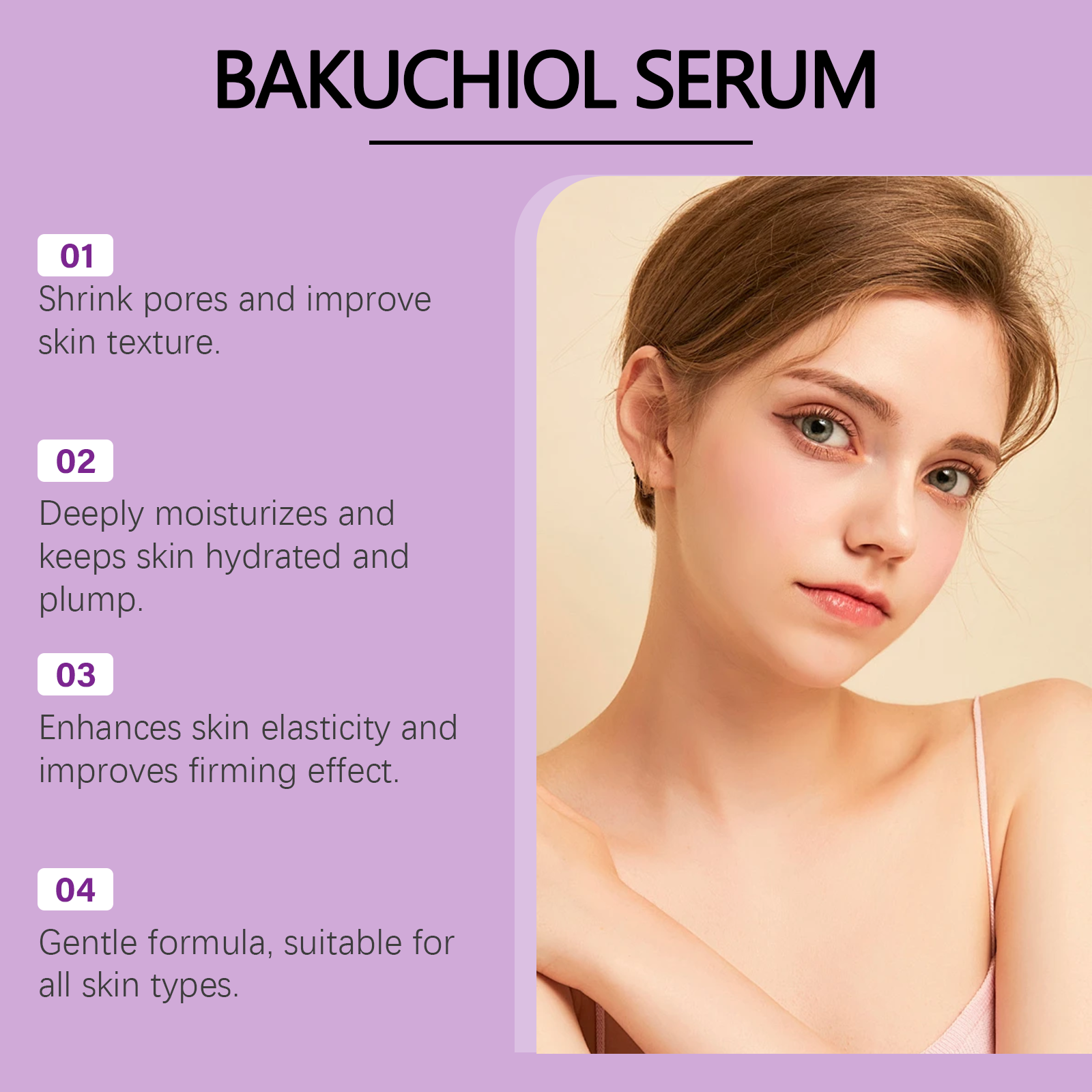 Our moisturizing serum contains hyaluronic acid and glycerin. It provides deep moisturizing and nourishing to the skin, locking in moisture and helping the skin stay hydrated and plump. Its application method is very simple: clean facial skin, keep skin dry, apply appropriate amount of this product on facial skin, gently massage until absorbed. It can also enhance skin elasticity, reduce relaxation, and make skin firmer and more energetic.
