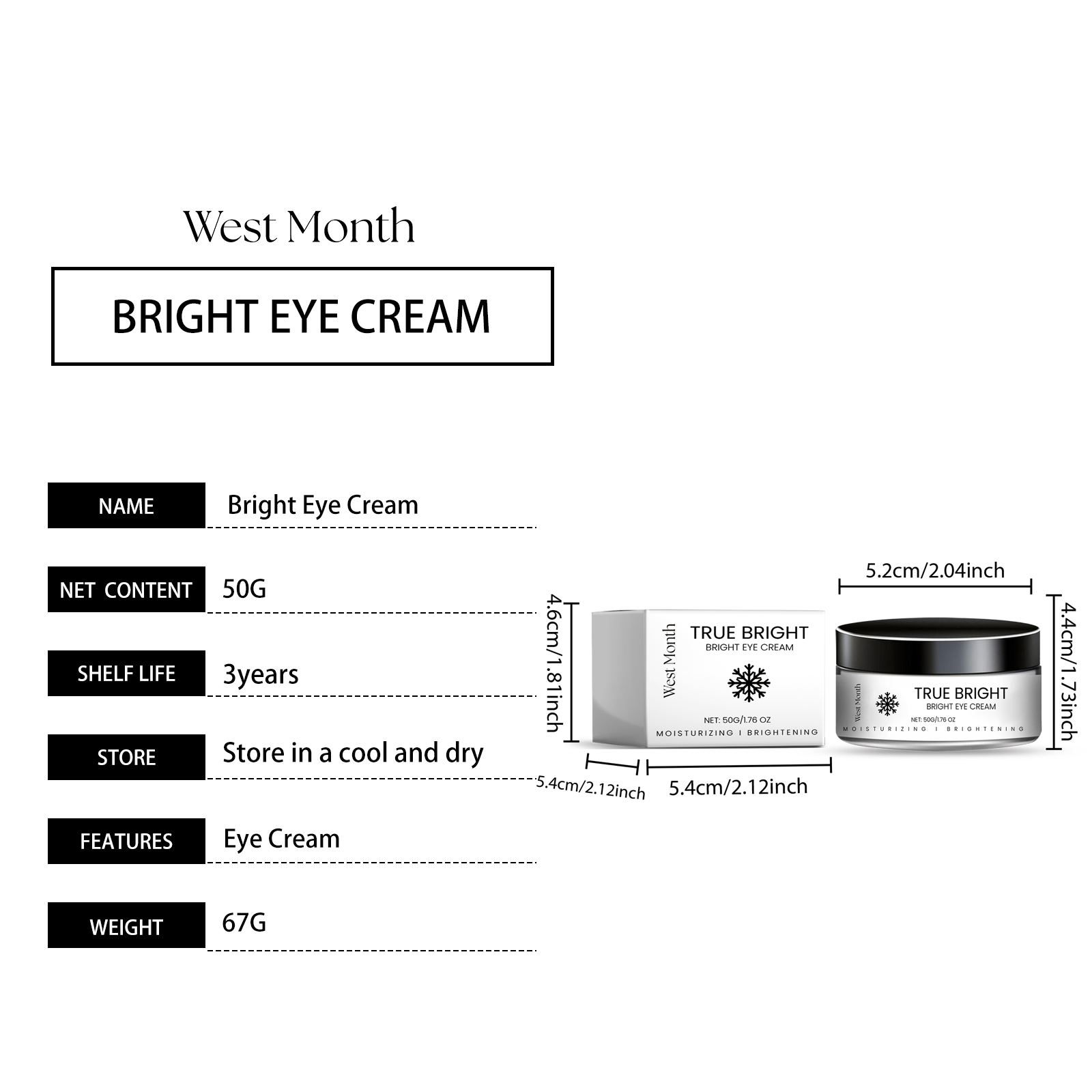 Our moisturizing brightening eye cream contains chlorella extract and vitamin C. It can brighten the skin tone around the eyes, reduce the uneven skin tone, and make the skin even and shiny. Its application method is simple: clean the skin around the eyes, dry it, take a pea-sized eye cream, evenly apply it to the skin around the eyes, gently pat and massage until absorbed. And can be deeply nourishing, lock water moisturizing, moisturizing all day.