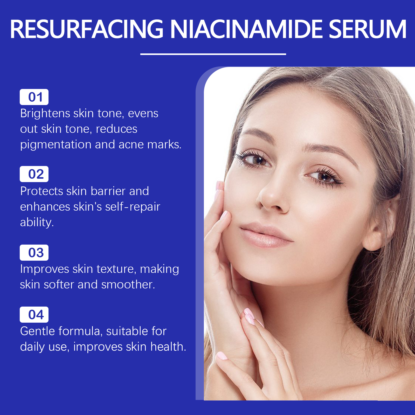 Our niacinamide Refresh Serum contains licorice root extract, niacinamide and retinol. It protects the skin barrier and enhances the skin's ability to repair itself. Its use method is very simple: after cleansing, apply appropriate amount of this product evenly on the face skin, gently massage in circles to promote absorption. And mild formula, suitable for daily use, improve skin health.