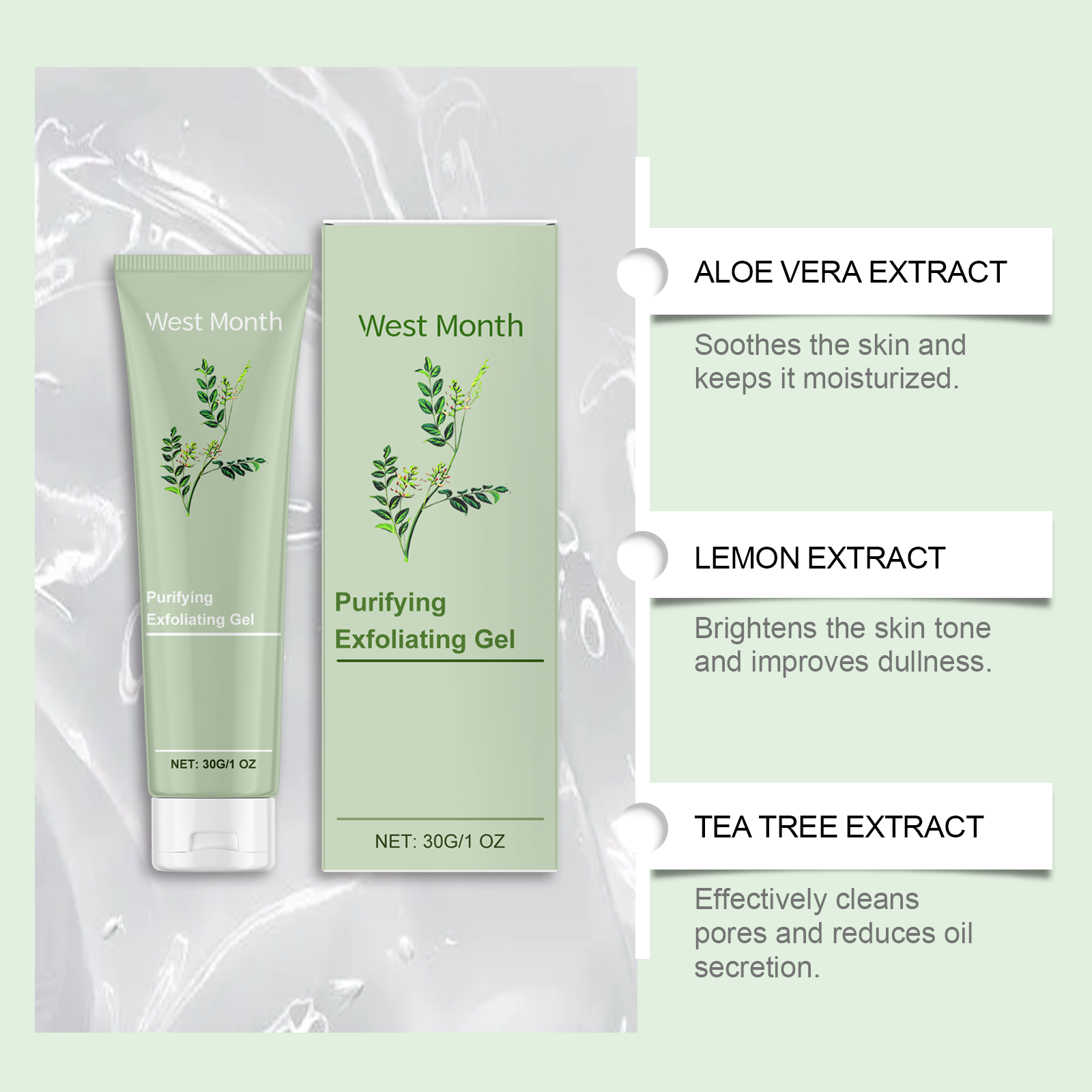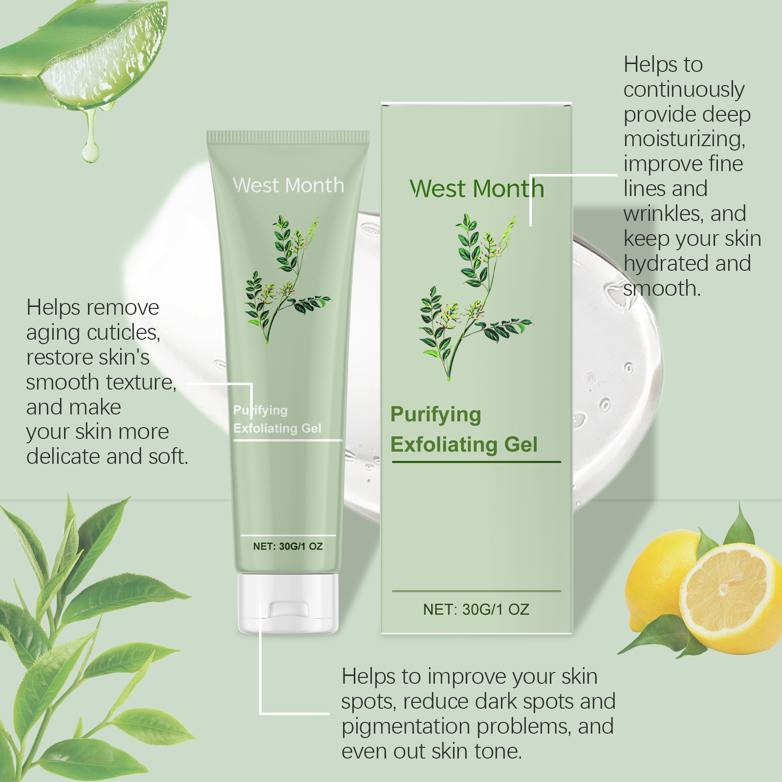 Our purifying exfoliating gel contains glycerin and aloe vera extract. It can effectively remove old dead skin cells and improve clogged pores. Helps restore smooth skin and improve skin texture. The way to use it is very simple: take an appropriate amount of this product, apply it to the face and massage it for 1-2 minutes in gentle circular motions. Rinse with water: Keep dry. And can moisturize dry skin, keep moist and smooth, effectively improve skin dullness, uniform and glossy skin, mild and non-irritating, suitable for daily use.