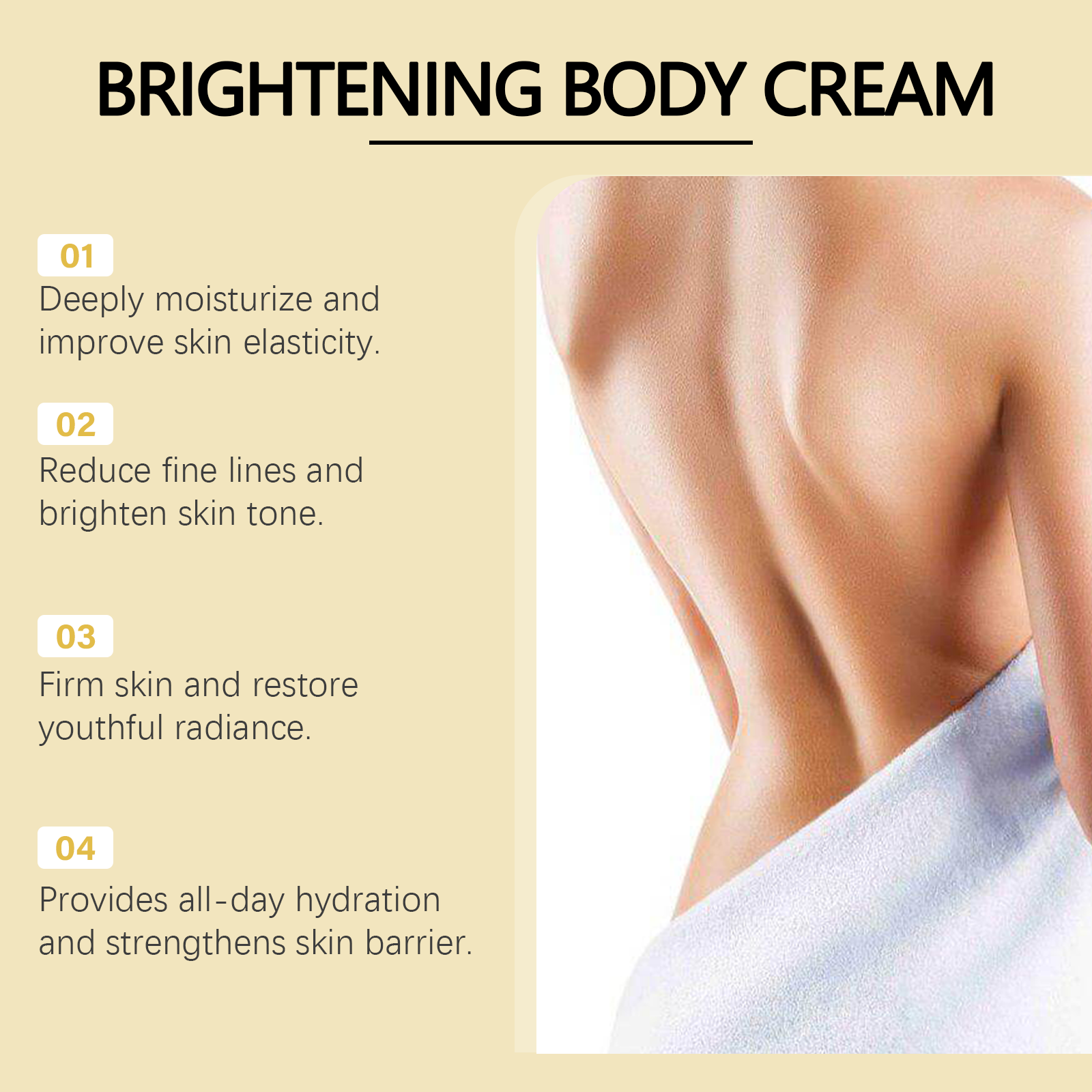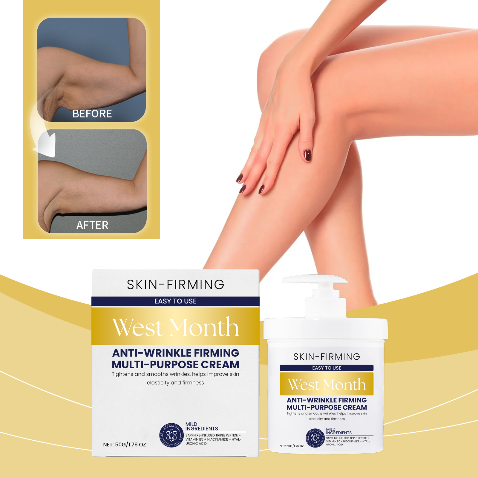 Our firming cream contains hyaluronic acid and vitamin B5. It improves skin elasticity, improves sagging, and creates a firm body shape. Its application method is simple: thoroughly clean and dry the skin, apply an appropriate amount of this product evenly on the neck, legs, abdomen, arms or other parts of the body that need to be applied, gently massage to promote better absorption. And can tighten the skin, restore youthful luster.
