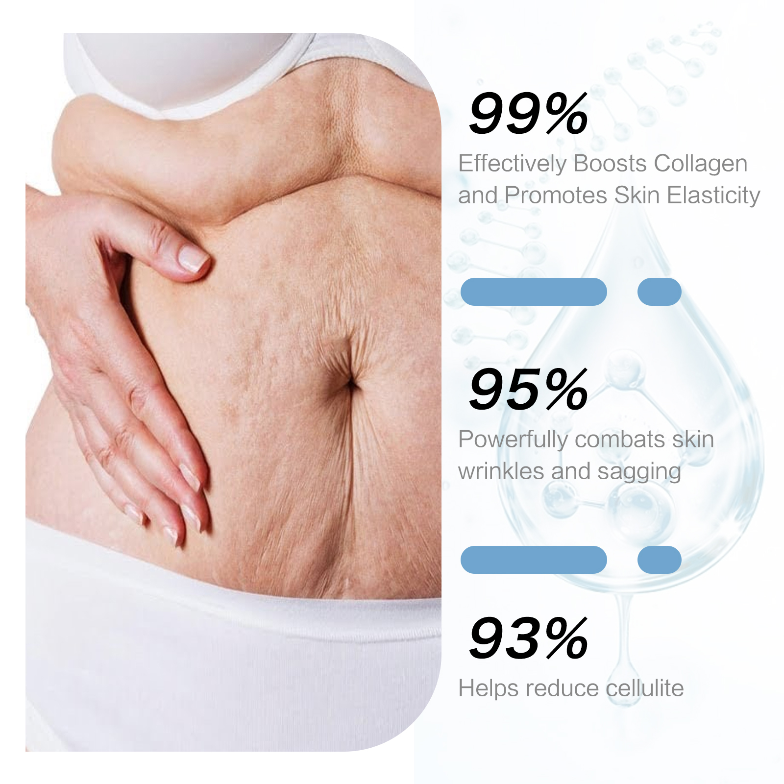 Our Slim Radiance slim & Firm Cream contains coffee extract, retinol, and hyaluronic acid. It can effectively stimulate collagen synthesis in the body, enhance skin elasticity, strongly fight skin wrinkles and sagging, and help reduce cellulite. Its use method is very simple: first, dry the body after taking a bath, and then apply an appropriate amount of this product on the arms, abdomen, legs and other parts, gently massage with your hand until absorbed. Daily use can get better results. Specifically for the breakdown of fat, promote collagen synthesis, increase skin firmness.