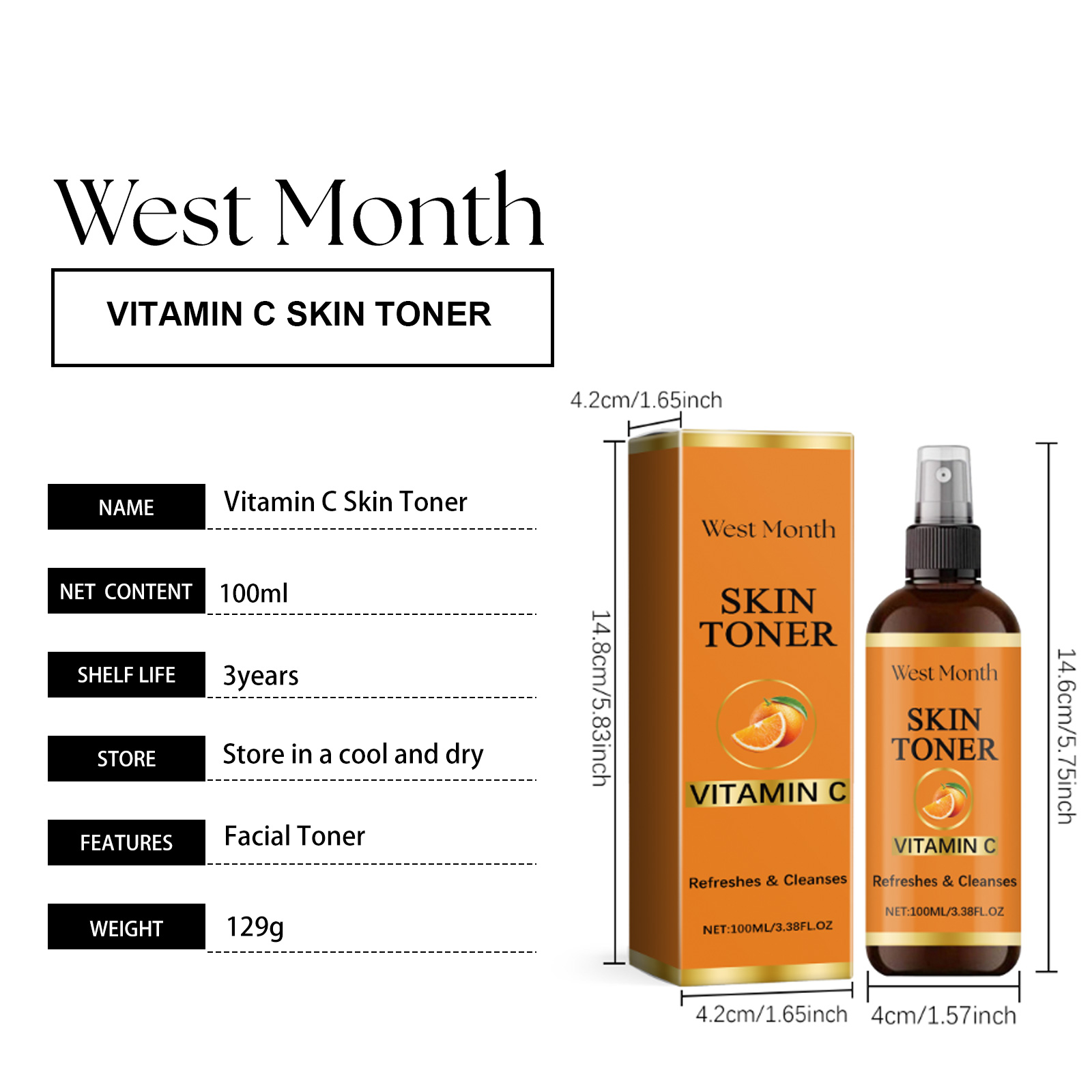 Our toner spray contains vitamin C: ascorbic acid (vitamin C), panthenol. Rose extract water: glycerin, rose wood extract. It can provide a variety of nutrients to enhance skin vitality and maintain health. Reduces fine lines and tightens skin. Its use method is very simple: 1. Clean facial skin and dry face; 2. Evenly spray appropriate amount onto facial skin; 3. Tap your face with your palm to absorb it. Makes skin smooth, soft and feels better. All-weather protection keeps skin hydrated, soft and smooth.