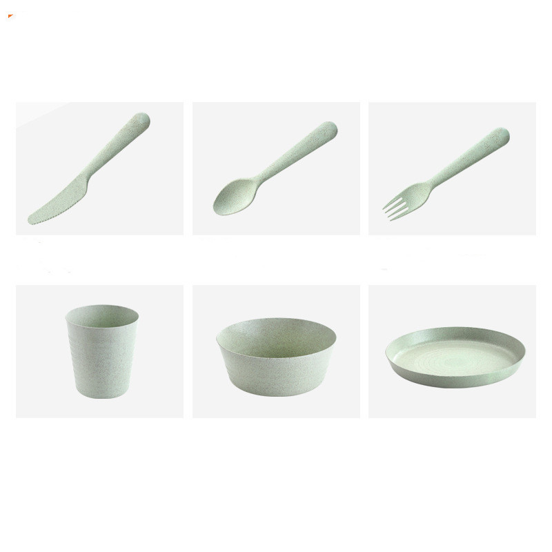 Color: Knife (4 pink + 4 green) kraft carton packaging, spoon (4 pink + 4 green) kraft carton packaging, fork (4 pink + 4 green) kraft carton packaging, cup (2 pink + 2 green) kraft carton packaging, Bowl (2 pink + 2 green) kraft carton packaging, saucer (2 pink + 2 green) kraft carton packaging