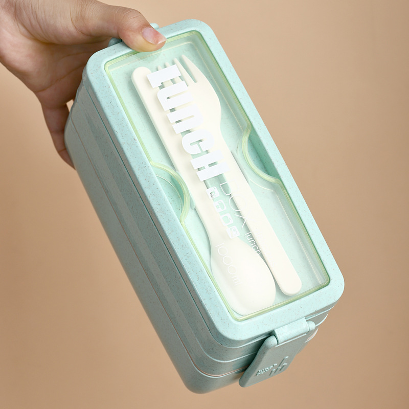 Specifications: pink double layer lunch box, green double layer double layer lunch box, beige double layer lunch box