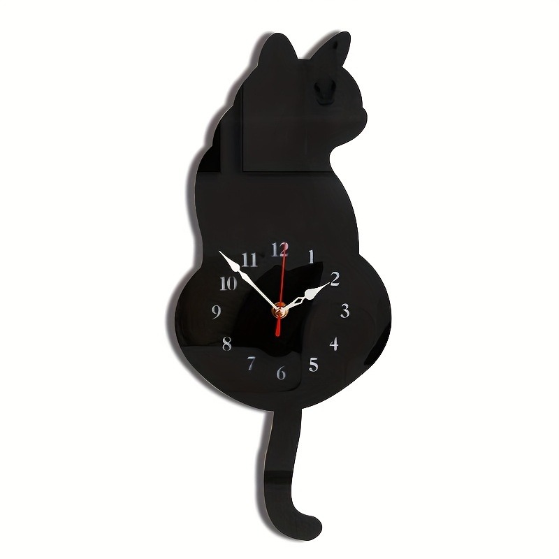 Whimsical Black Cat Pendulum Wall Clock With Moving Tail Fun And Unique Home Decor For Living Room Office And Bedroom