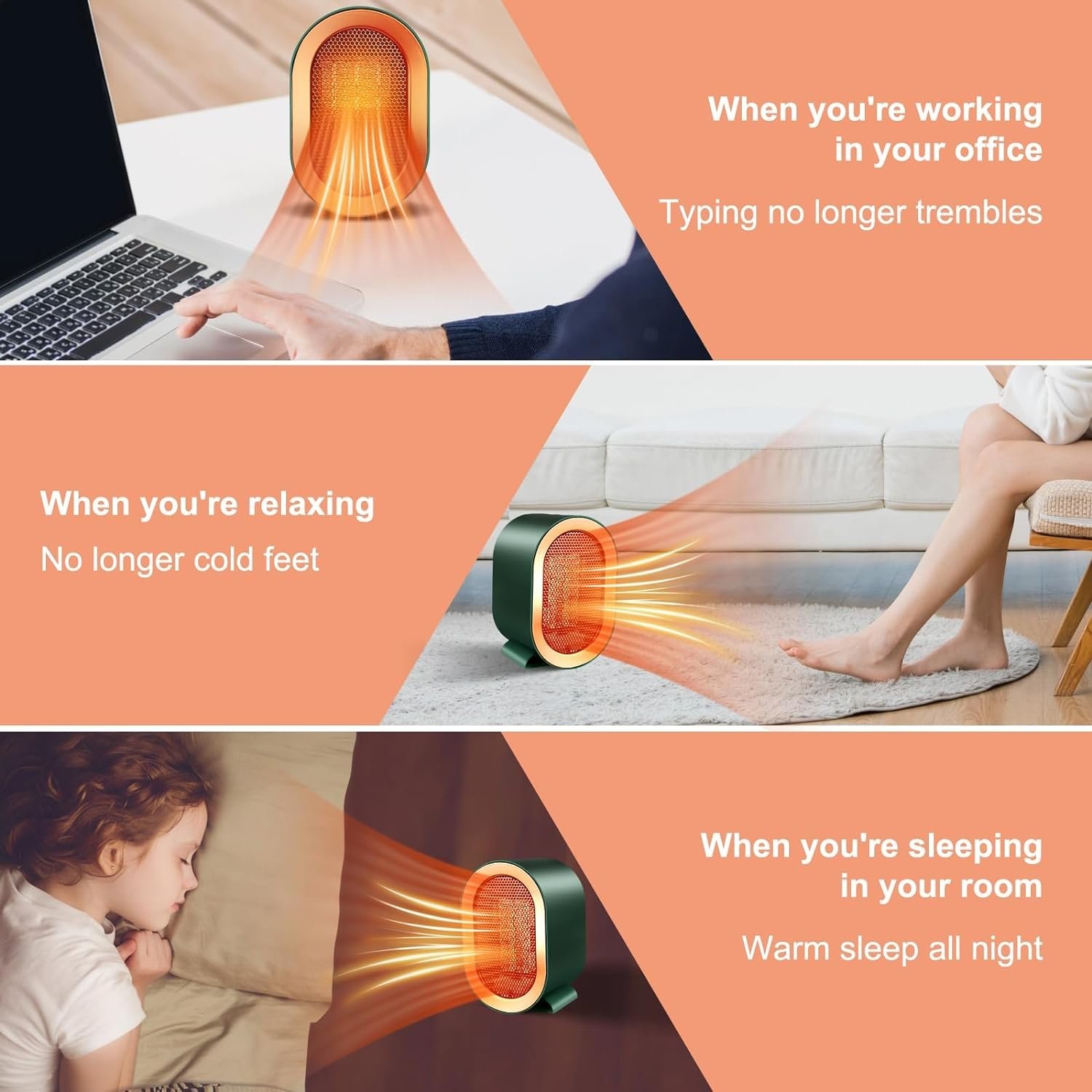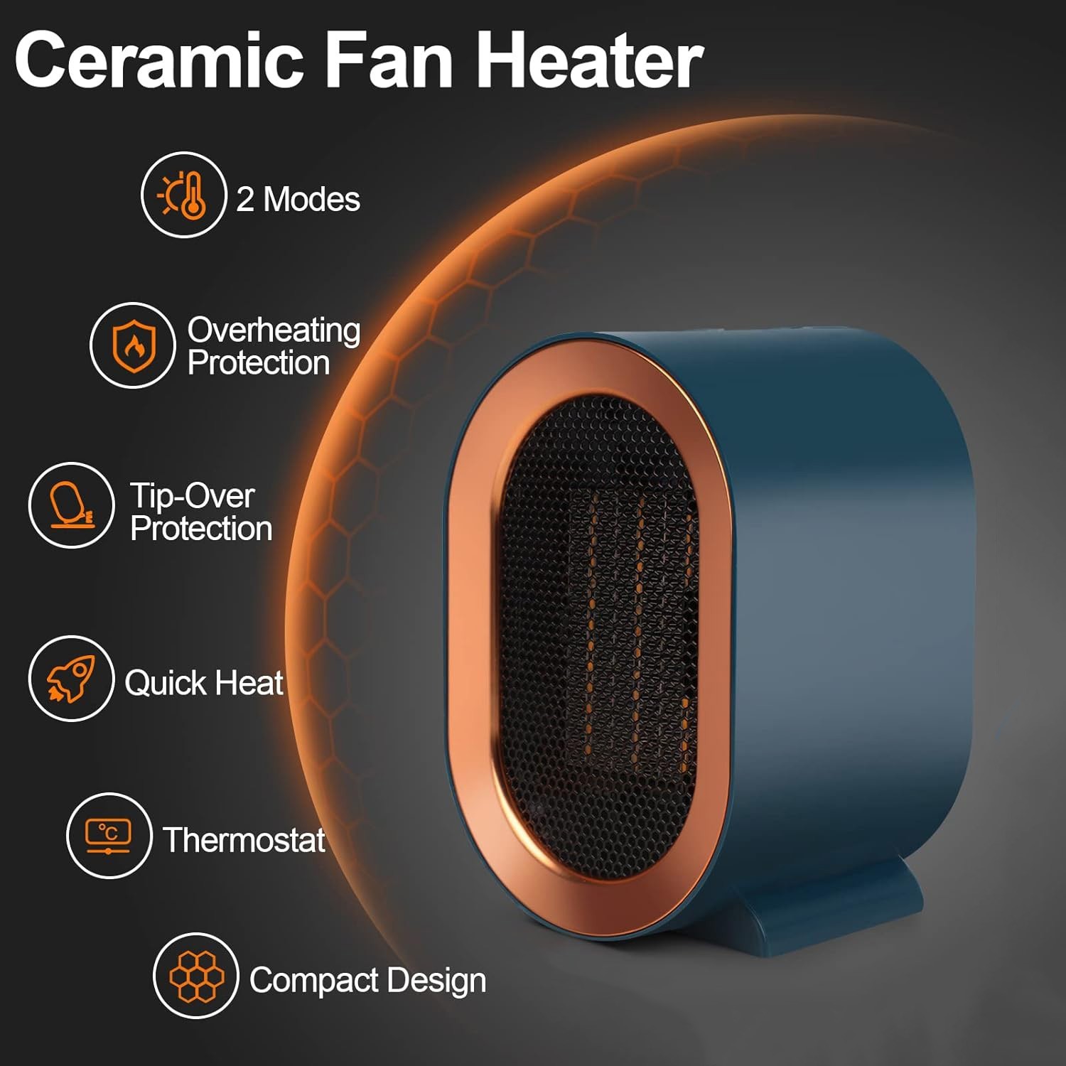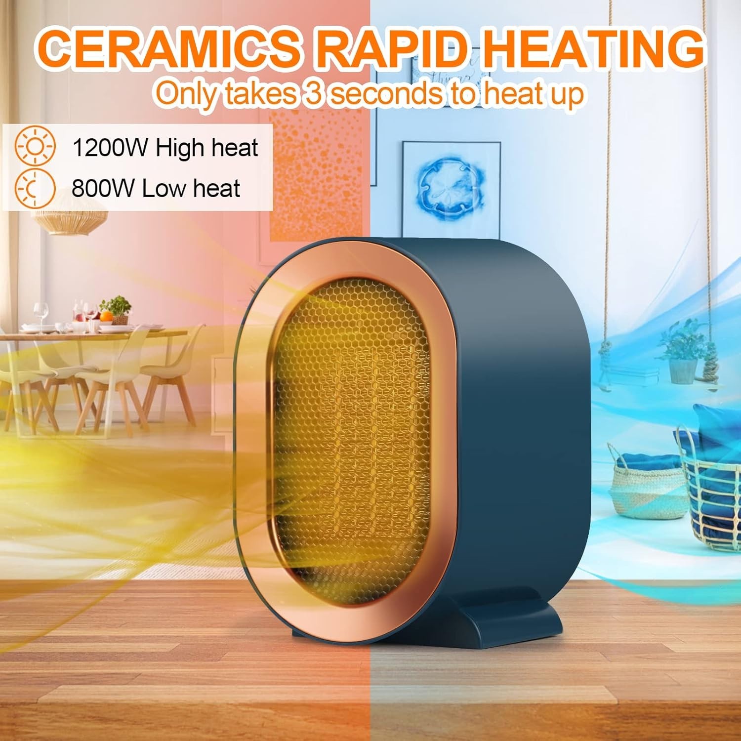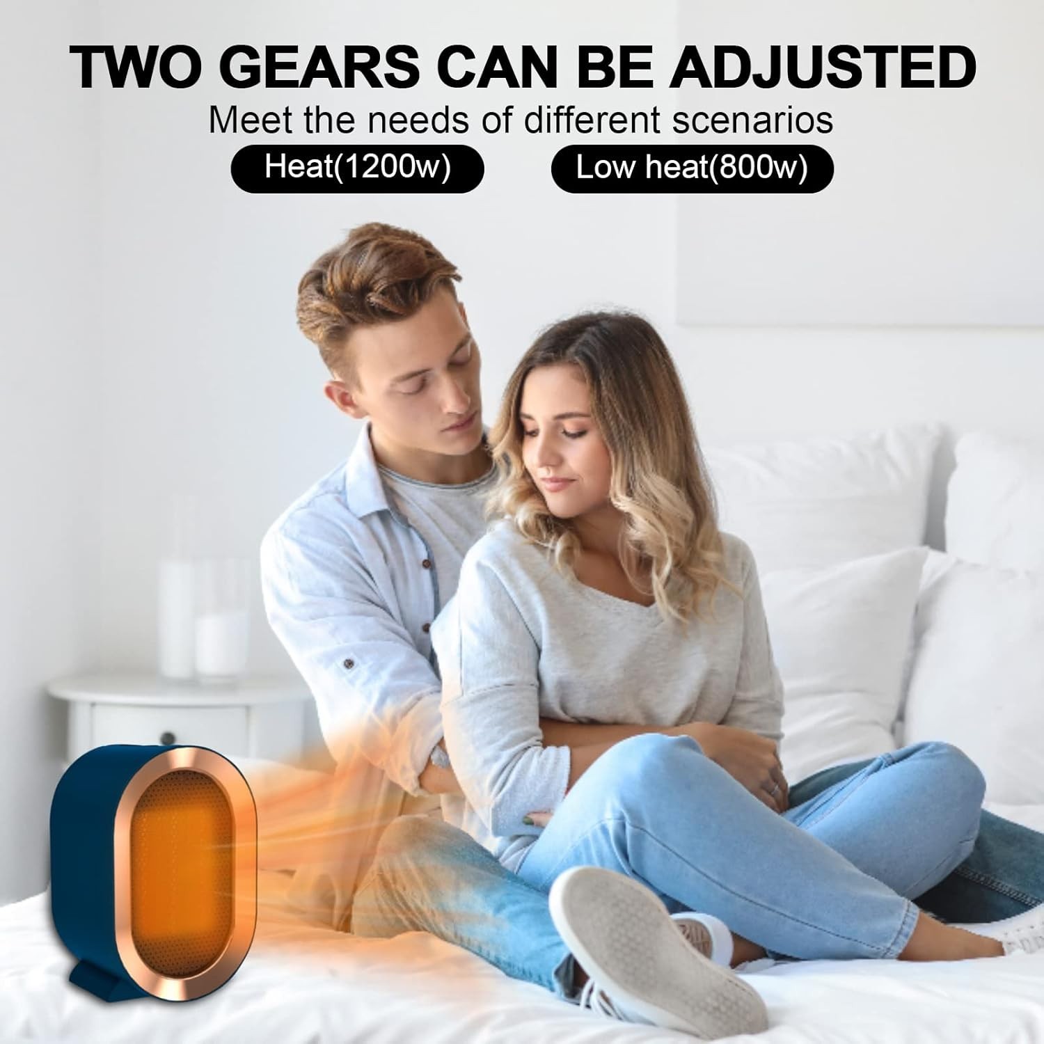 White 1200W Electric Space Heater Low Energy Ceramic Fast Heating Fan Portable Remote