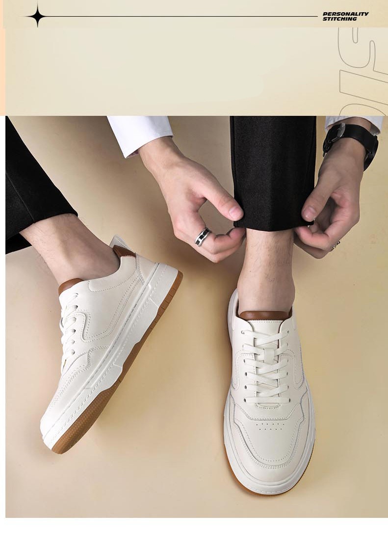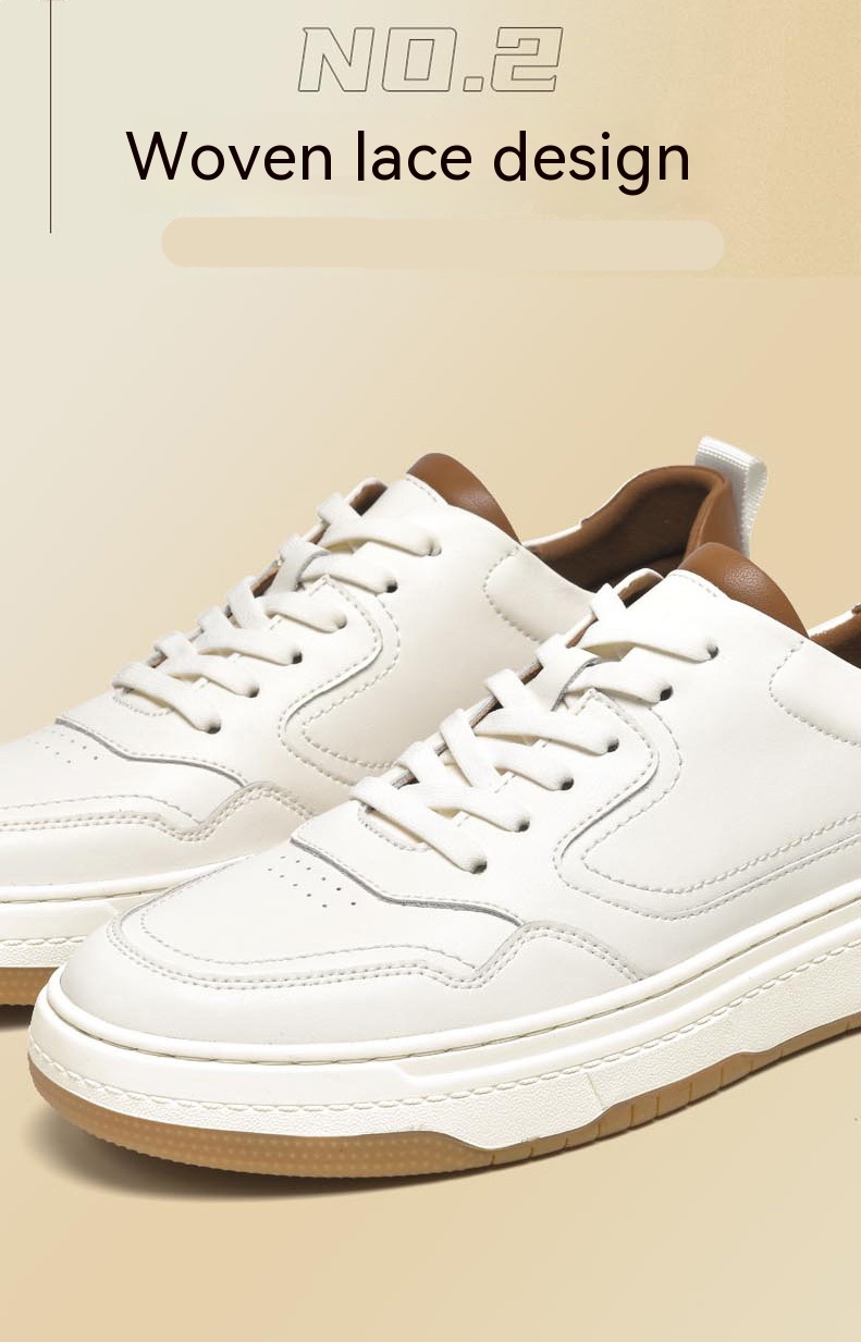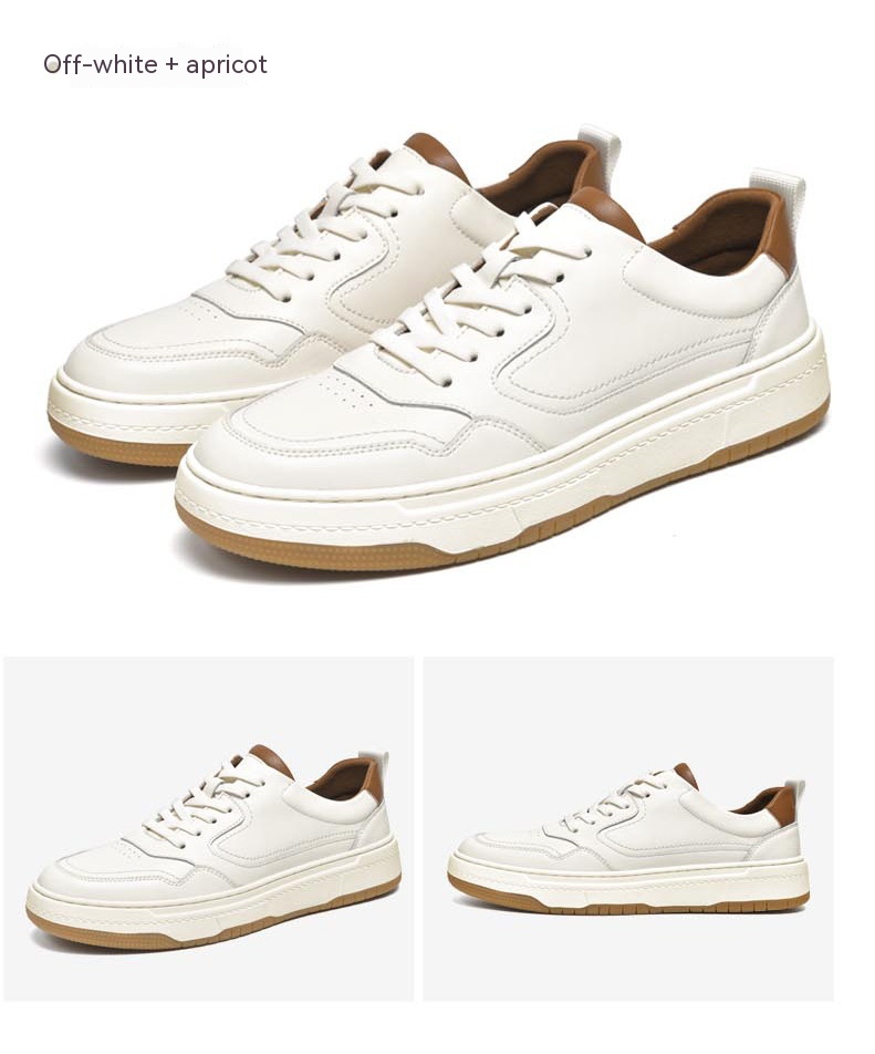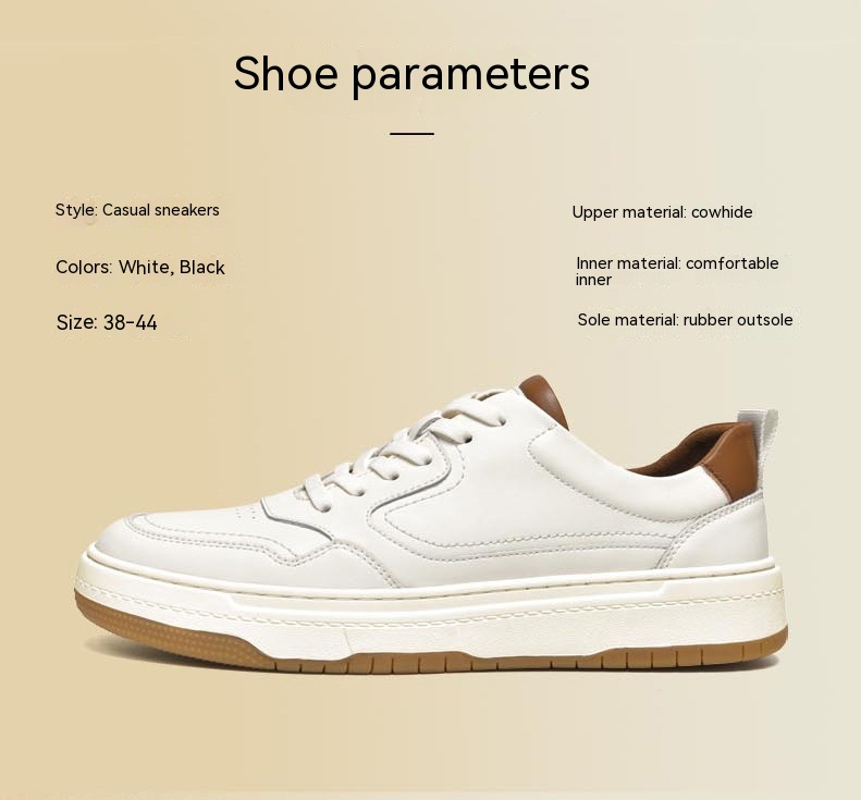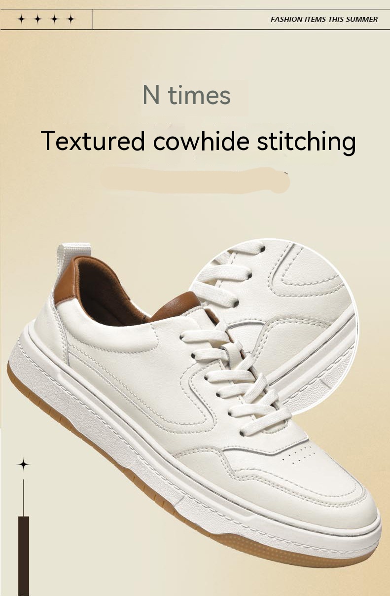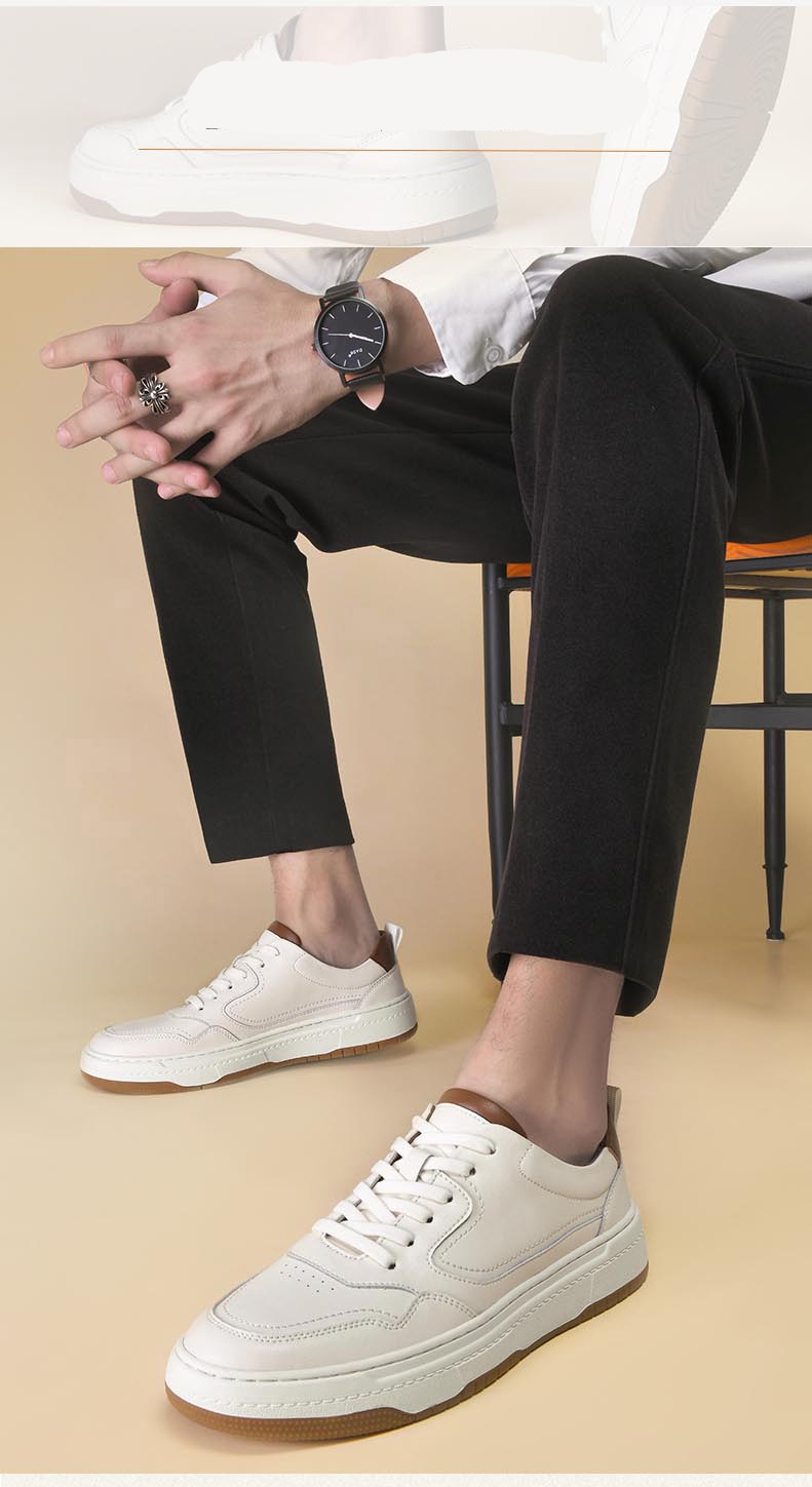 White Men's Two-layer Cowhide Autumn Men's Sneaker Korean Fashion Casual Shoes