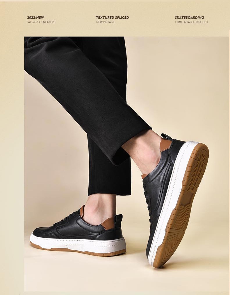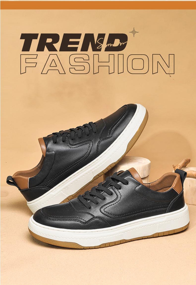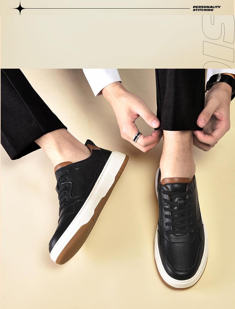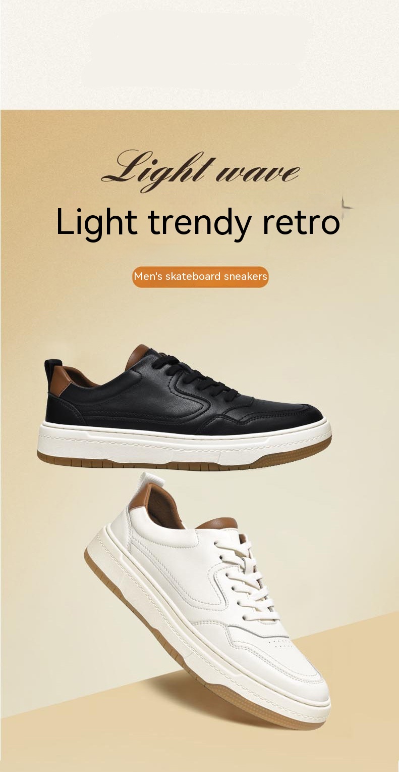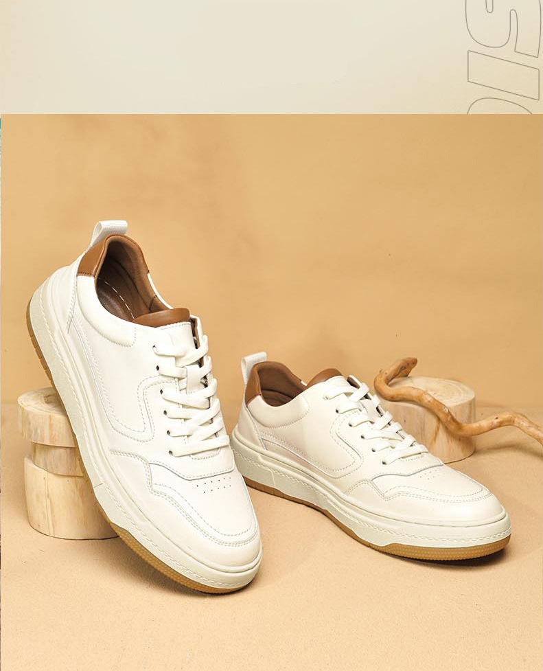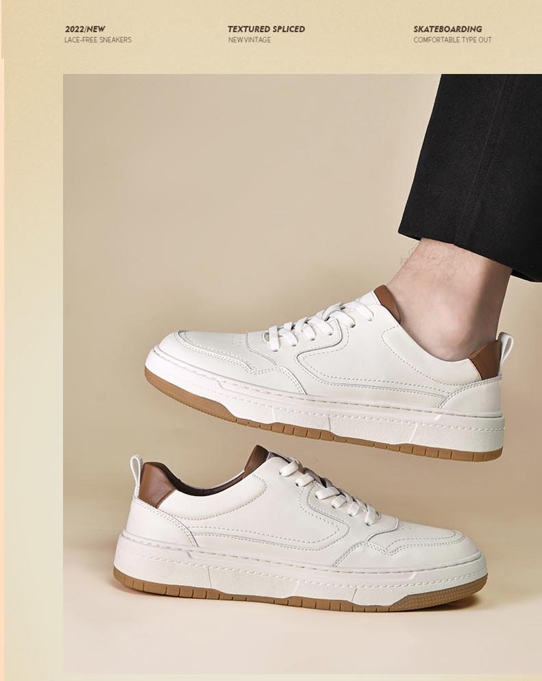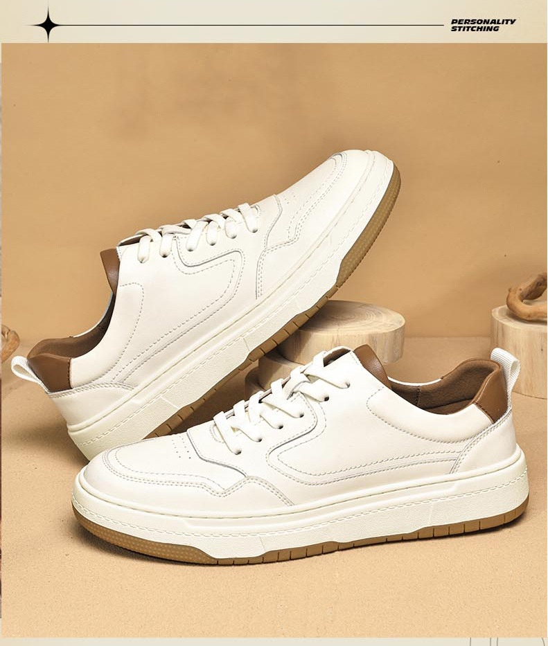 White Men's Two-layer Cowhide Autumn Men's Sneaker Korean Fashion Casual Shoes