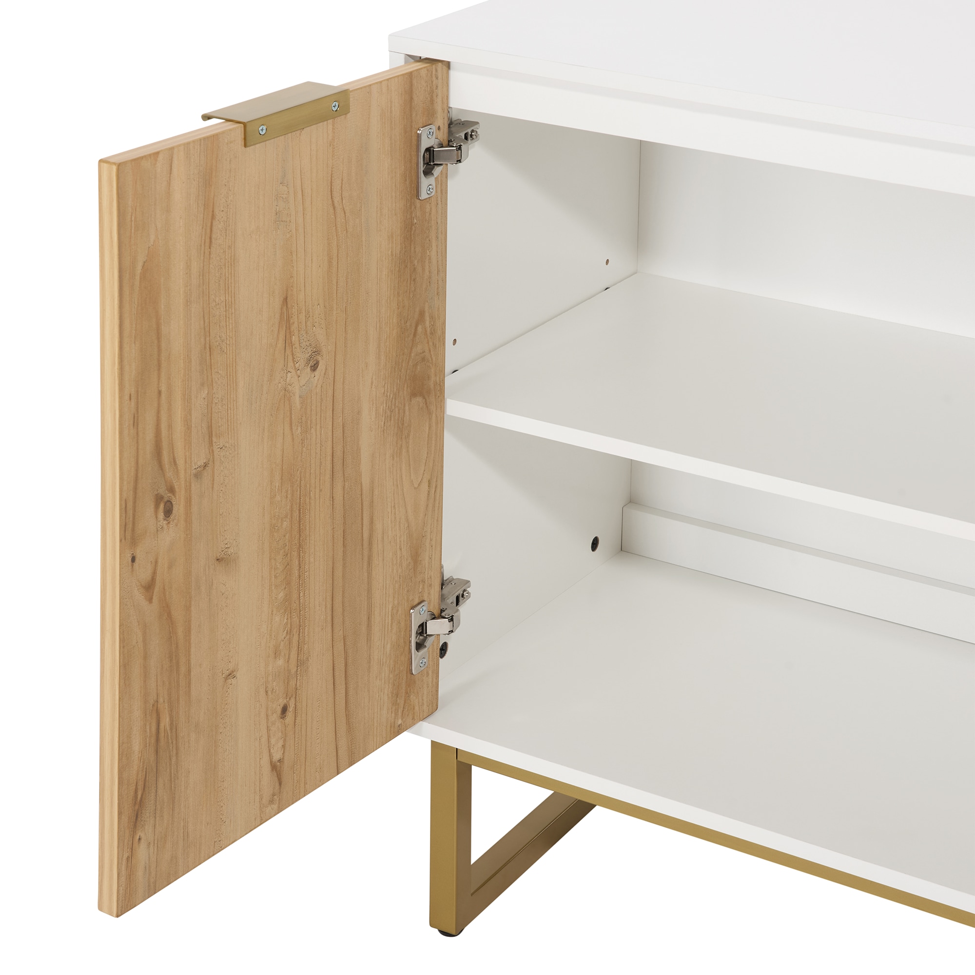 White And Gold Storage Cabinet With 2 Doors, Modern Buffet Sideboard Cabinet With Storage,Accent Cabinet For Living Room, Dining Room, Entryway