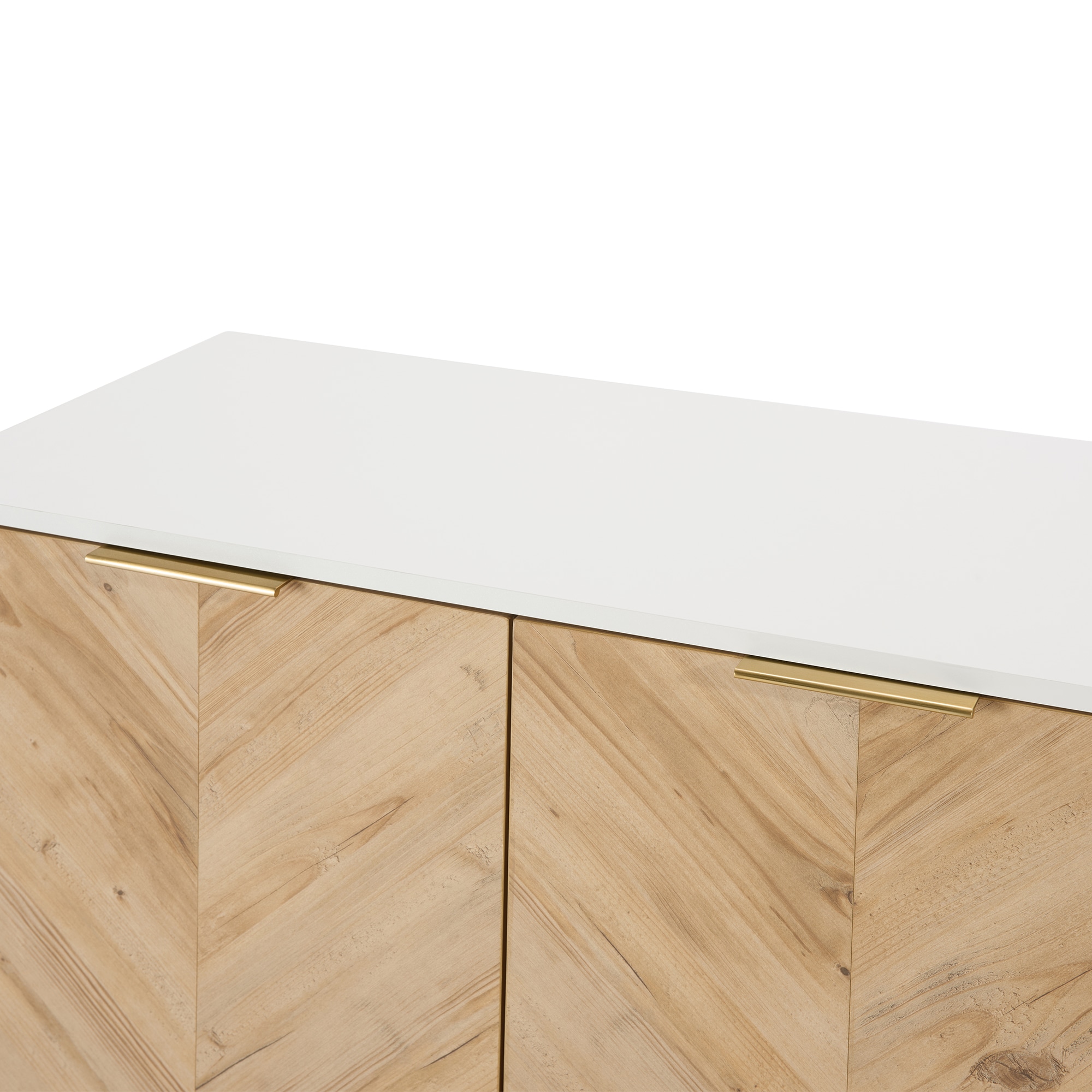 【Sleek Modern Design】: The gold base and handles paired with a unique herringbone wood pattern create a stylish focal point in any space.
