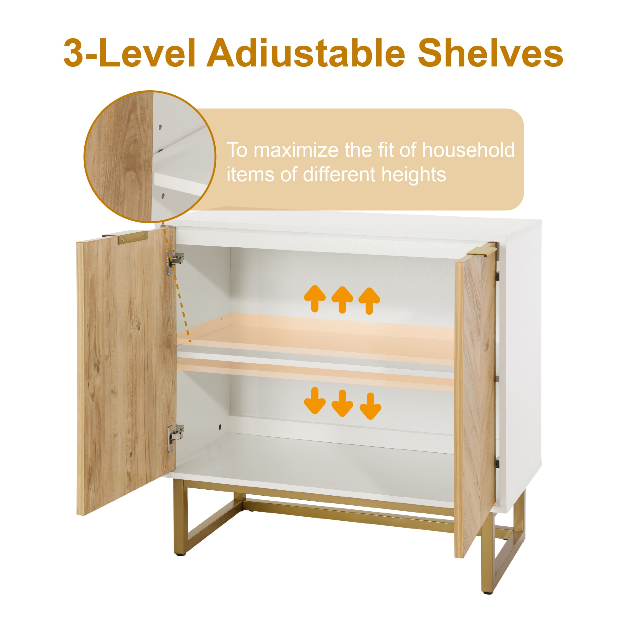 【Customizable Storage】: With removable and adjustable shelves behind each door, you can easily organize your belongings to suit your needs.