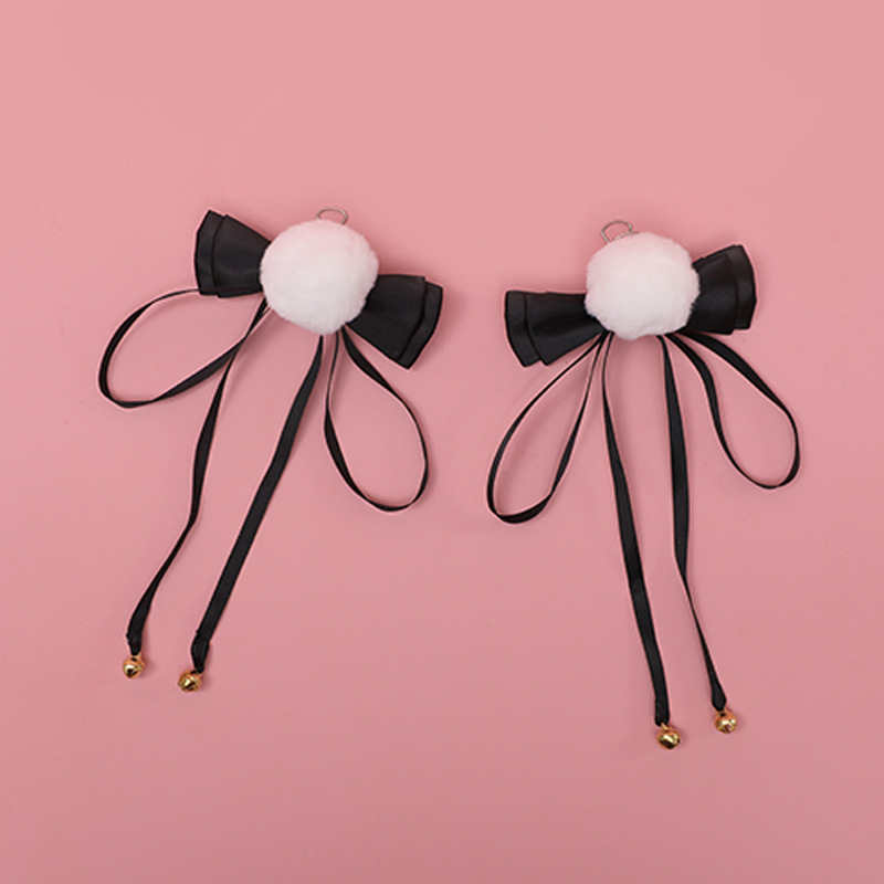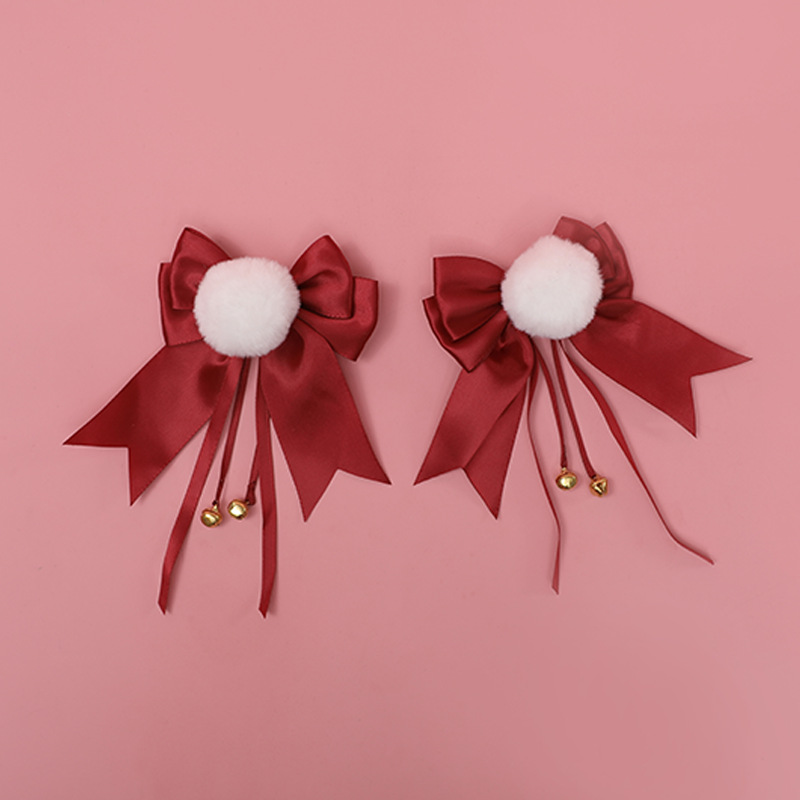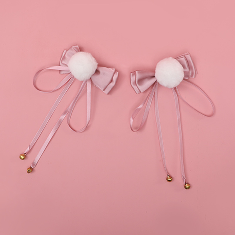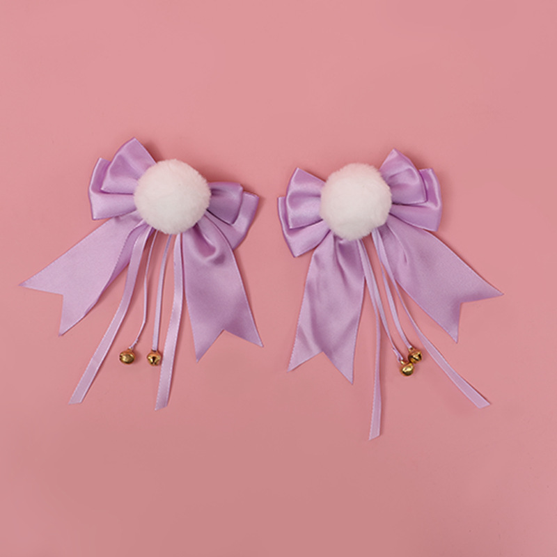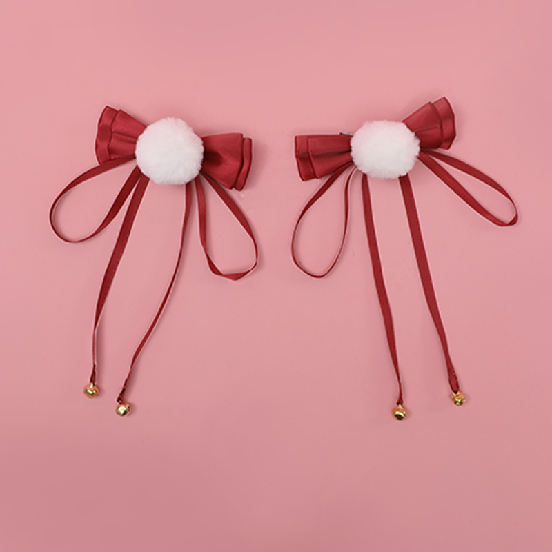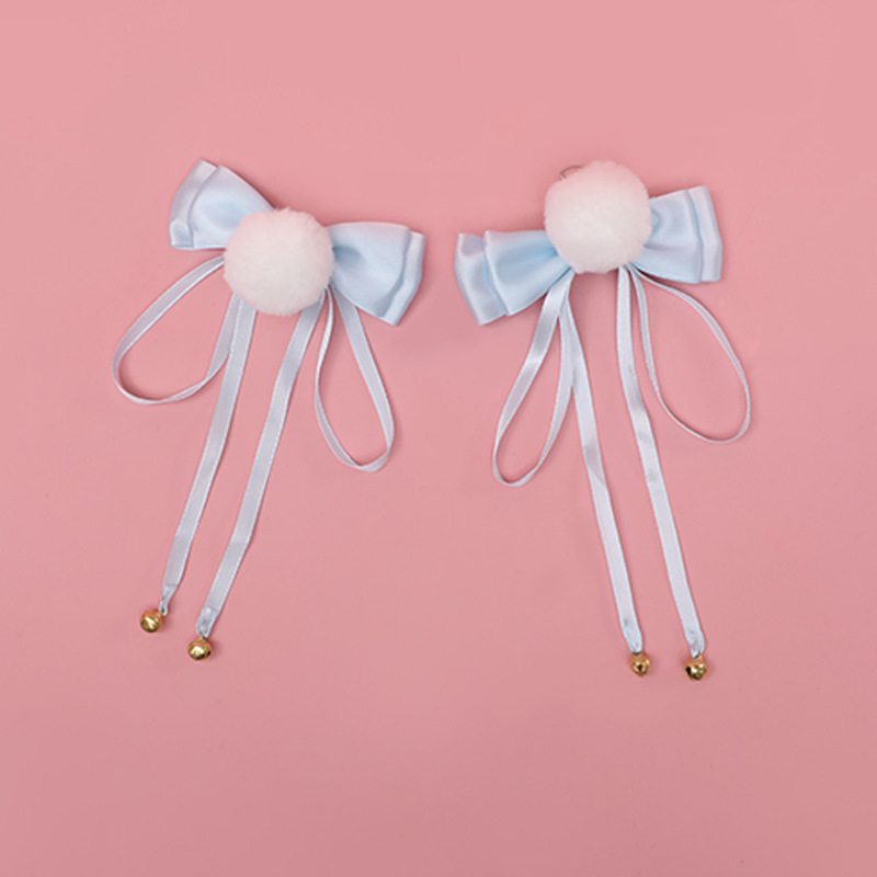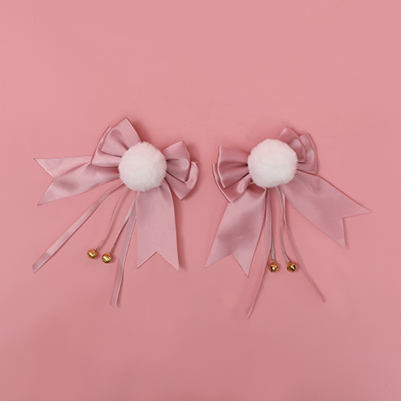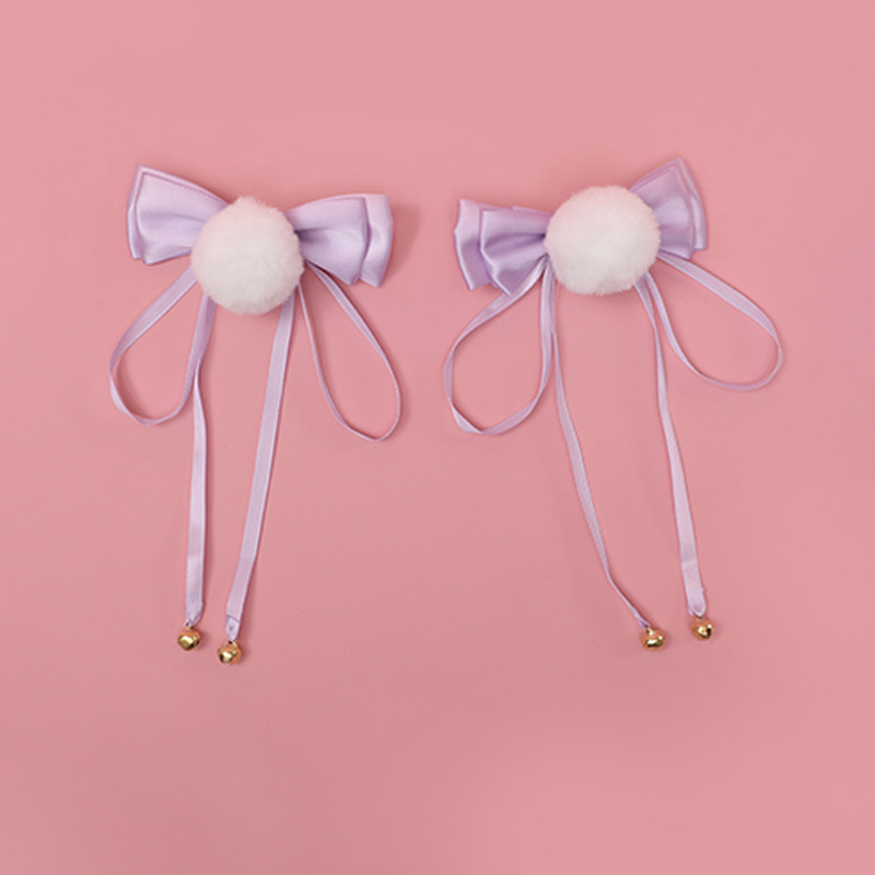 Color: Bow Bell Pompom Hairpin A Style-Purple, Bow Bell Pompom Hair Clip A Style-Black, Bow Bell Pompom Hair Clip A Style-Wine Red, Bow Bell Pompom Hairpin A Style-Lotus Root Powder, Bow Bell Velvet Ball hairpin A style-sky blue, bow bell pompom hairpin B style-purple, bow bell pompom hairpin B style-black, bow bell pompom hairpin B style-wine red, bow bell pompom hairpin B style -Lotus root flour, bowknot bell pompom hairpin B type-sky blue