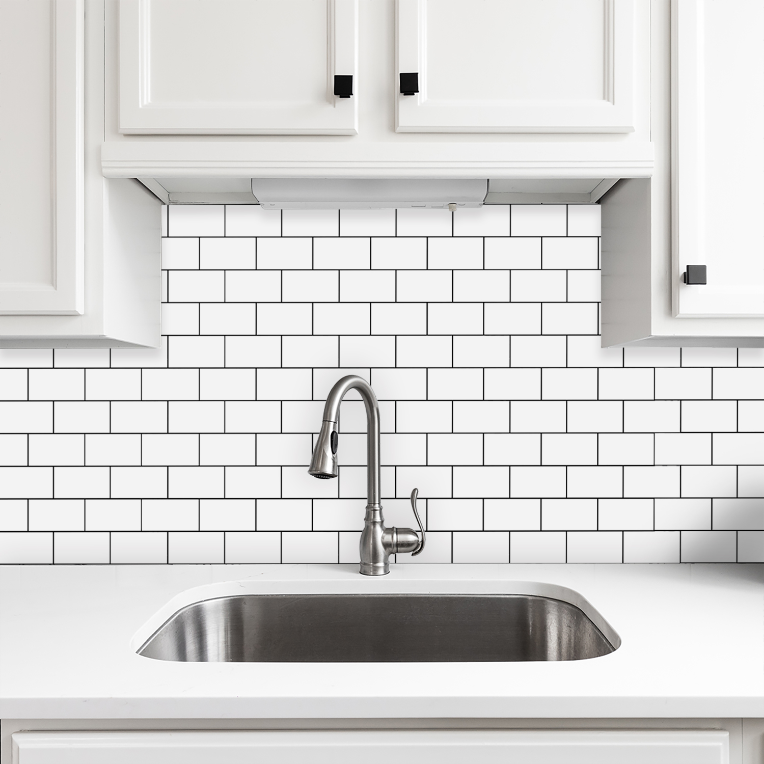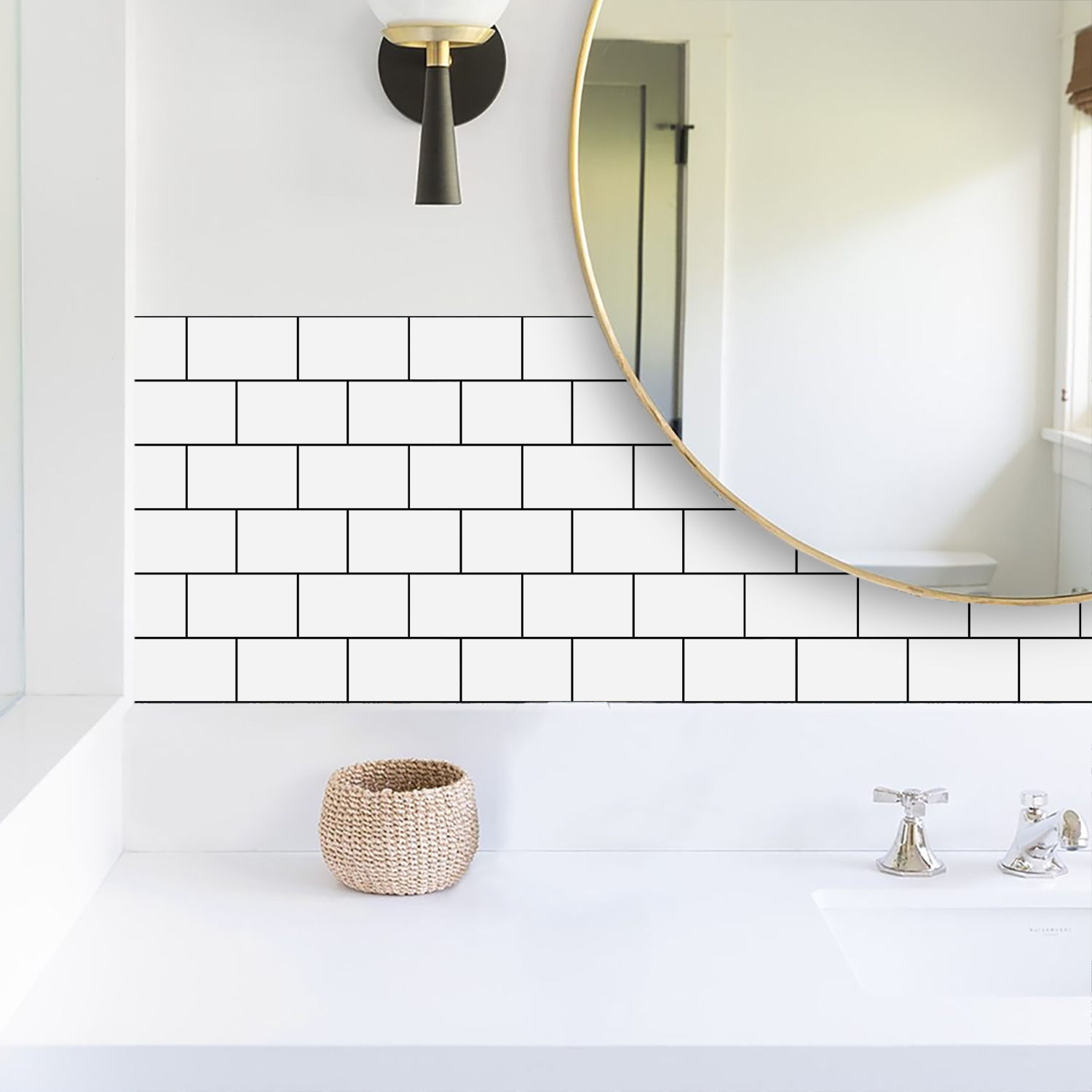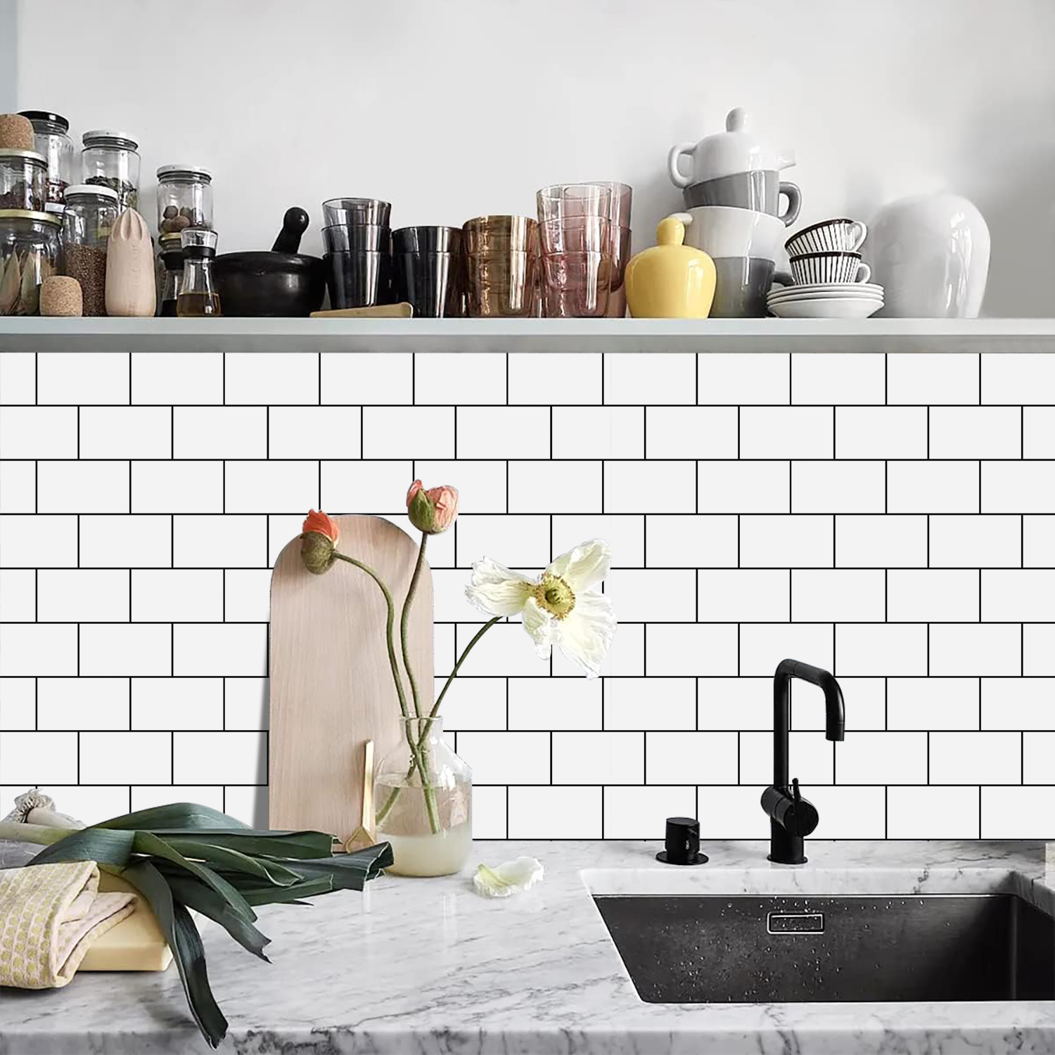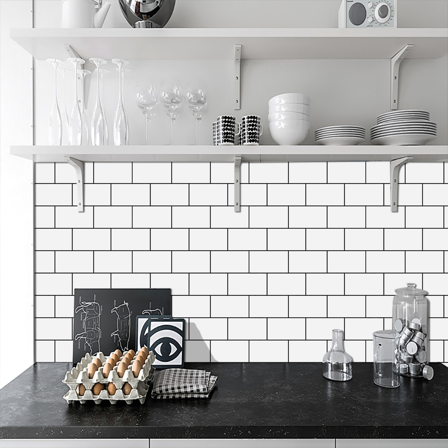 White Black Seam Peel And Stick Splashback Kitchen Glossy PVC Splashback Bathroom Wall Sticker, Removable