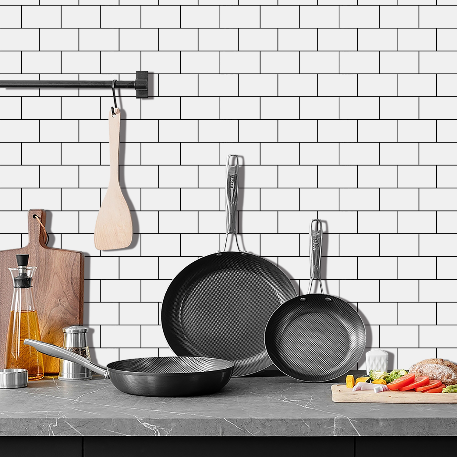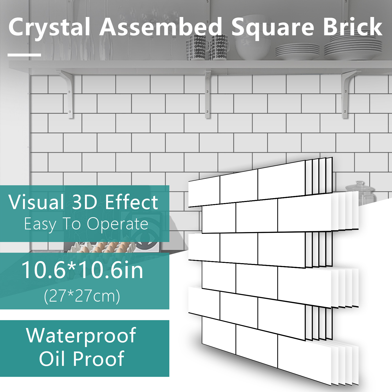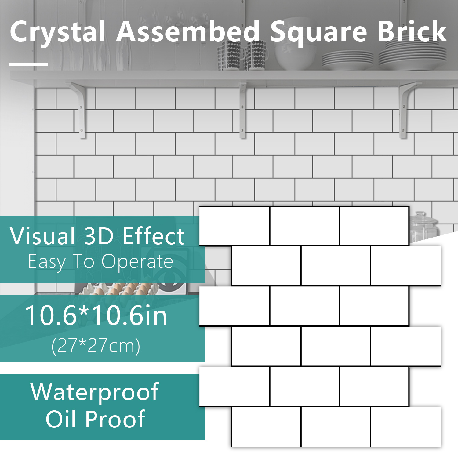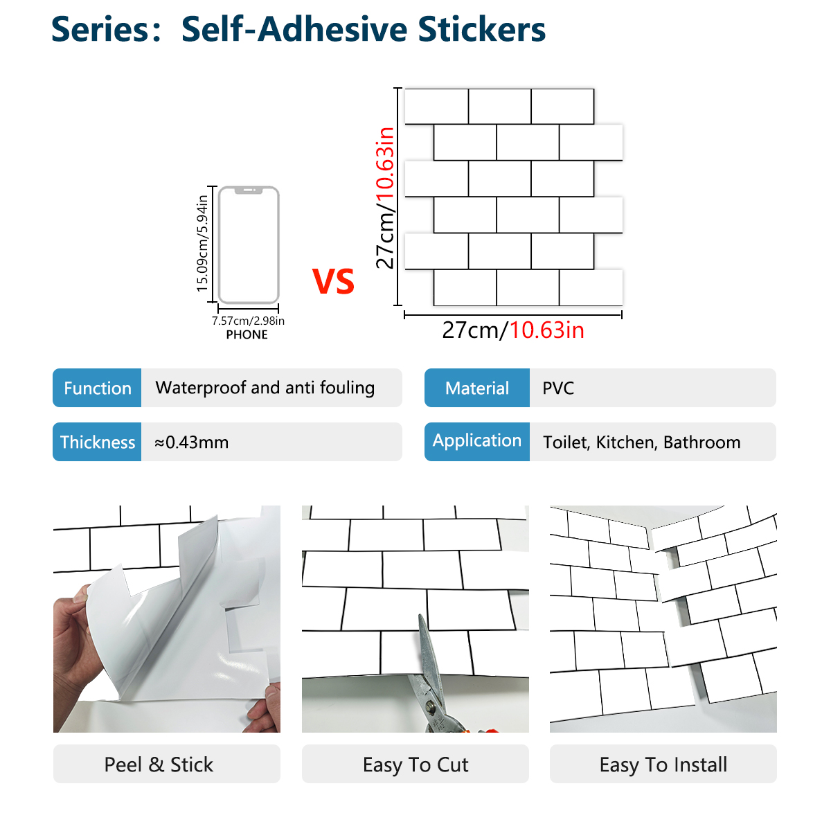 White Black Seam Peel And Stick Splashback Kitchen Glossy PVC Splashback Bathroom Wall Sticker, Removable