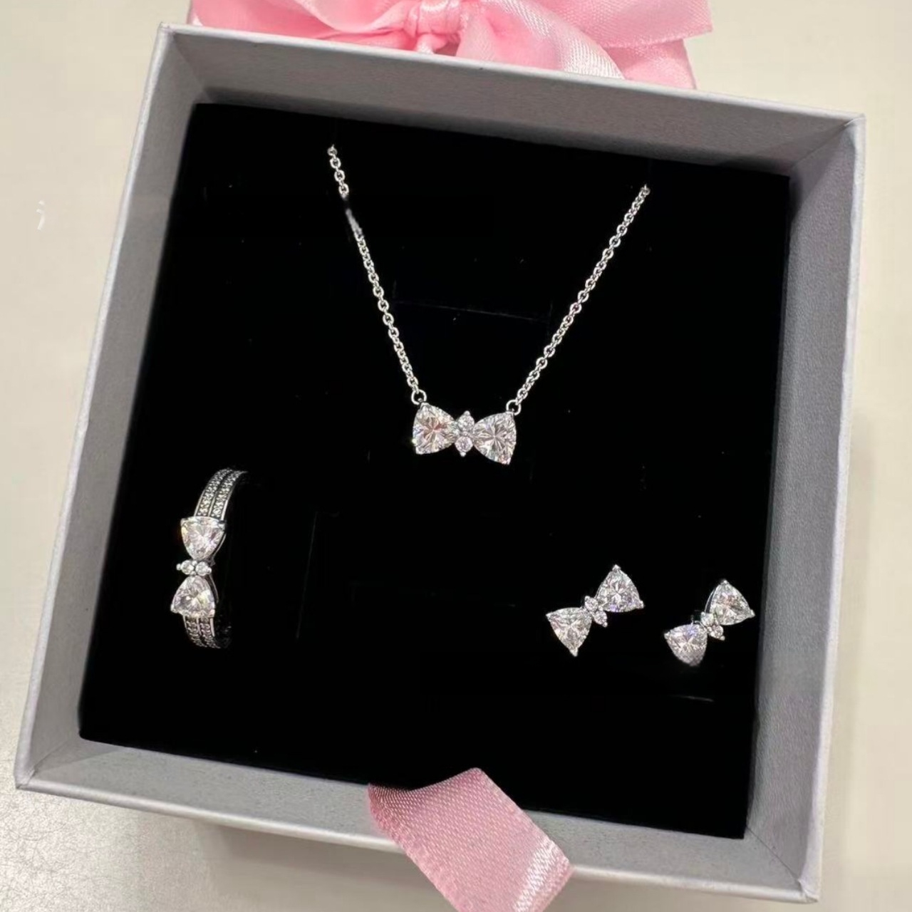• Pink Bow Stud 3pcs set