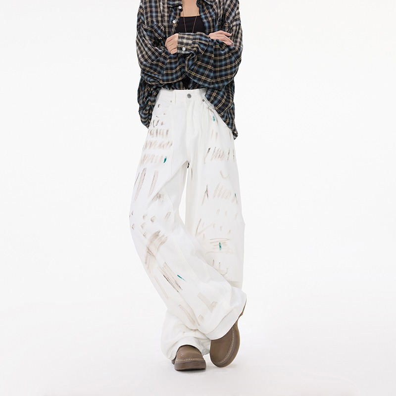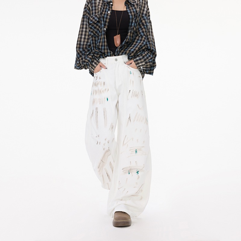 White Dirty Graffiti Machete Jeans For Women