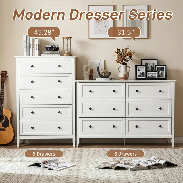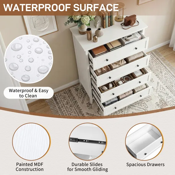 Classic Design & Durable Finish: This dresser showcases a beautiful white embossed finish with a traditional frame-style panel design. The surface is protected by a hard-wearing melamine laminate, which is highly resistant to scratches, stains, and moisture, ensuring the furniture maintains its pristine, bright appearance and is easy to clean for years of daily use in your home.