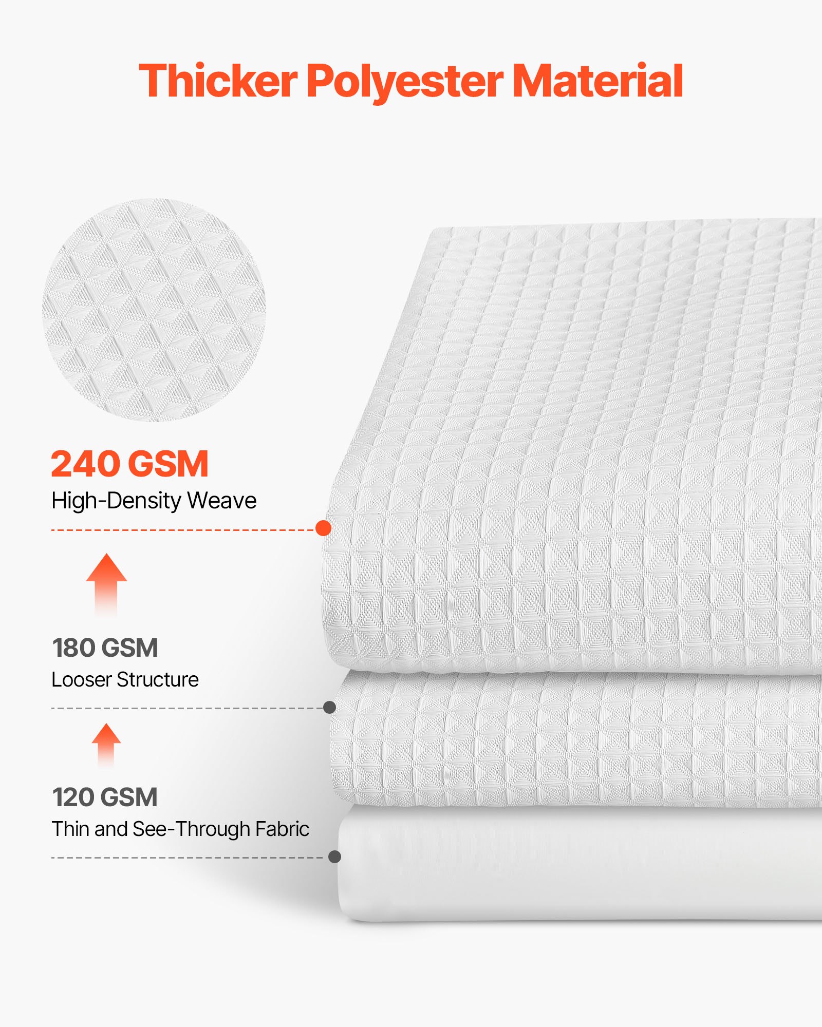 Thickness Upgrade: Made from thick 240 GSM fabric, this white fabric shower curtain offers excellent light filtering and privacy coverage. Water beads up and rolls off the surface. For better waterproofing, pair with a 100% waterproof liner