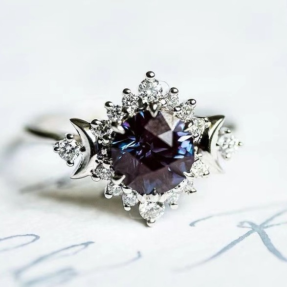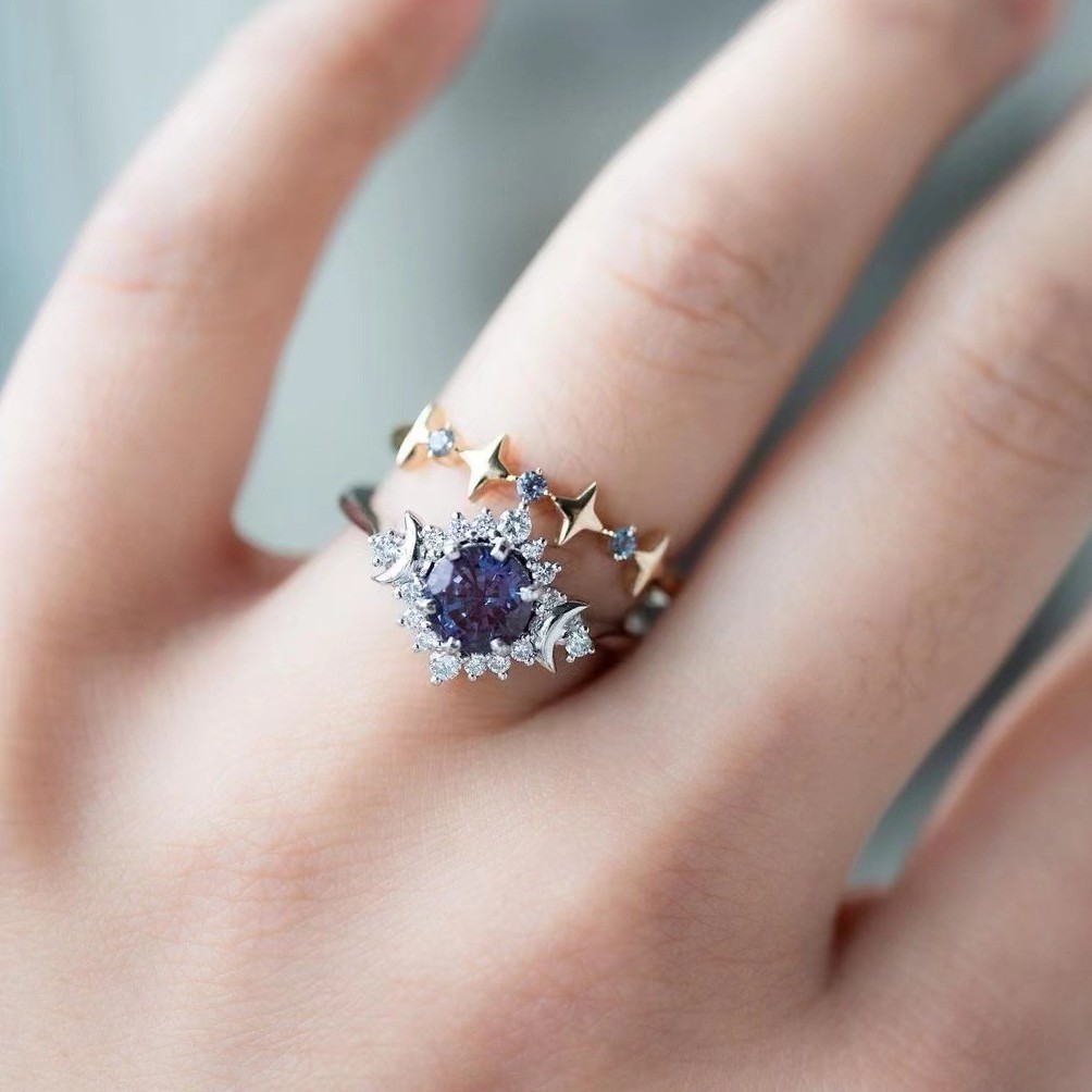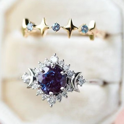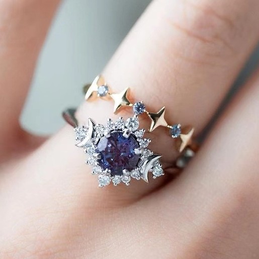 Color: Star moon purple diamond couple ring