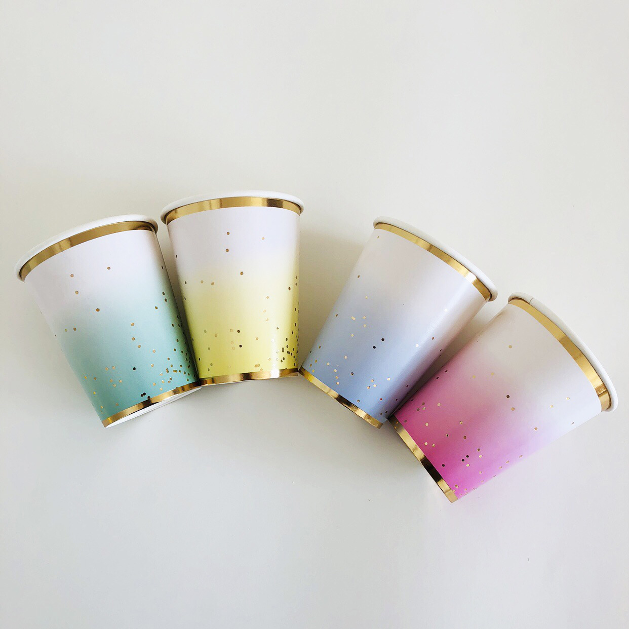 Size: 8 ice cream trays pink, 8 ice cream trays purple, 8 ice cream trays mint green, 8 ice cream trays blue, 8 270ml paper cups bronzing smudge powder, 8 270ml paper cups bronzing smudge blue, 8 270ml paper cups Bronzing yellow, 8 270ml paper cups bronzing green, 16 sheets of 25*25cm paper towel pink ice cream, 16 sheets of 25*25cm paper towel yellow ice cream, 16 sheets of 25*25cm paper towel blue ice cream, 16 sheets of 25*25cm paper towel mint green ice cream