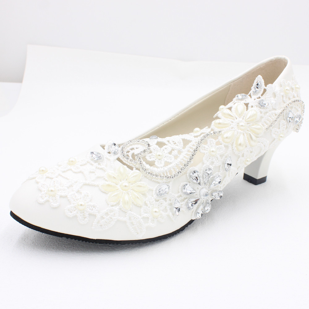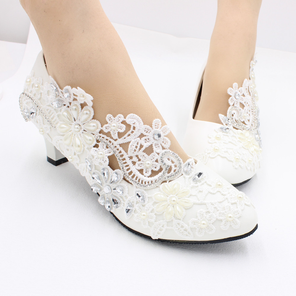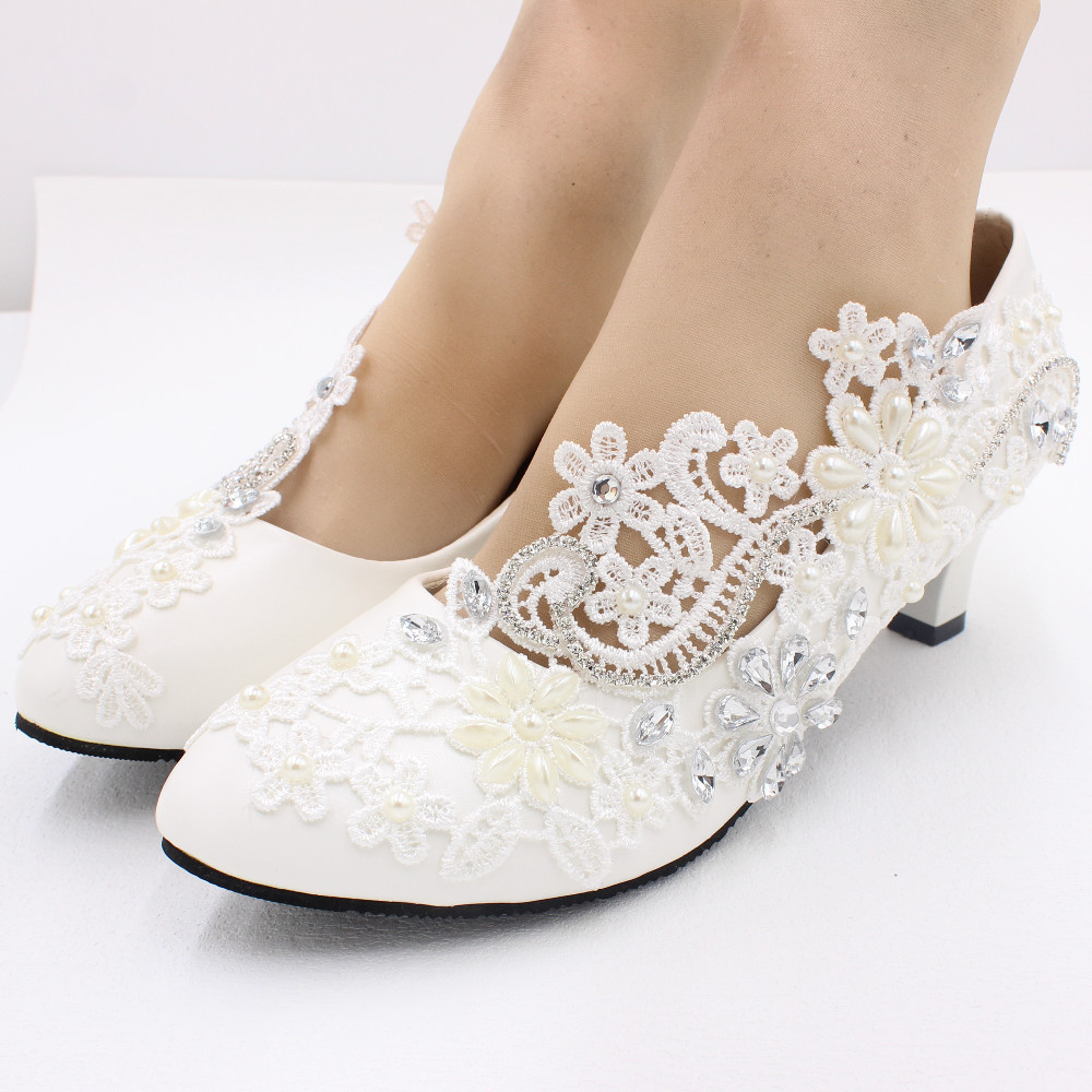 White High-heeled Wedding Shoes Lace Rhinestone Bridal