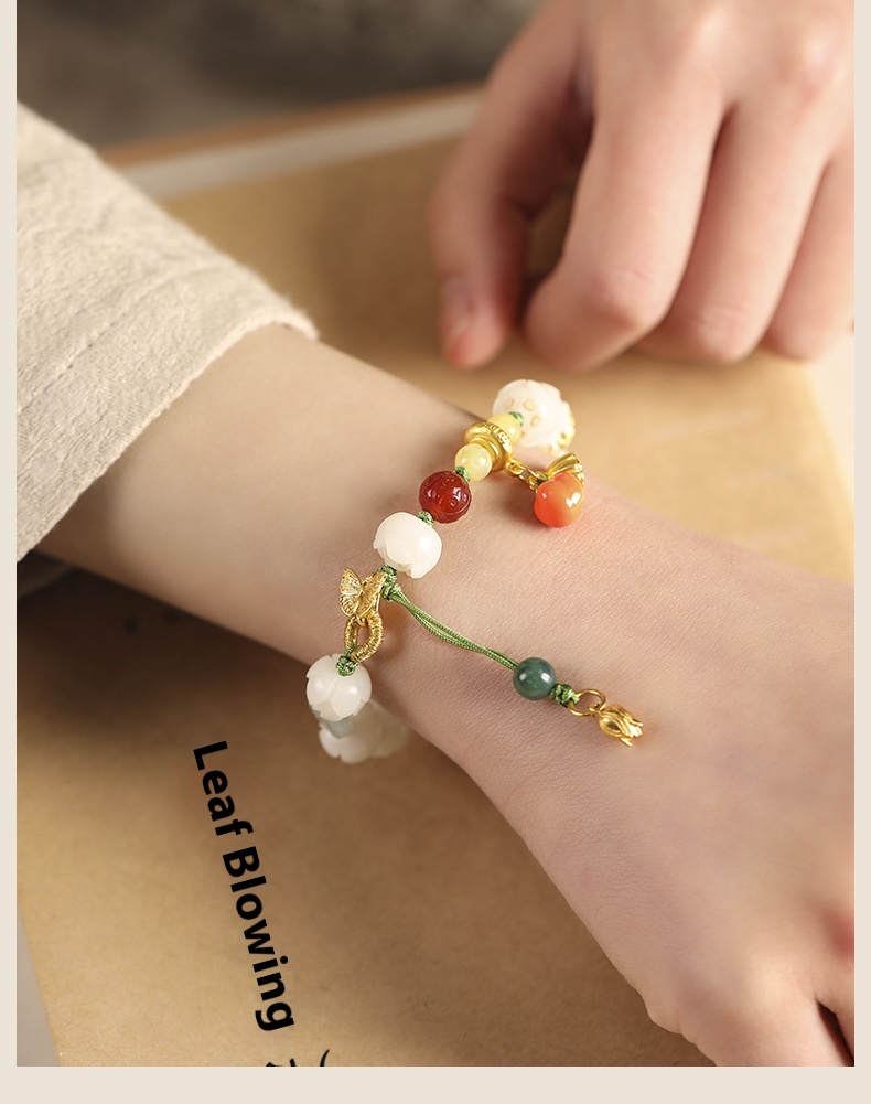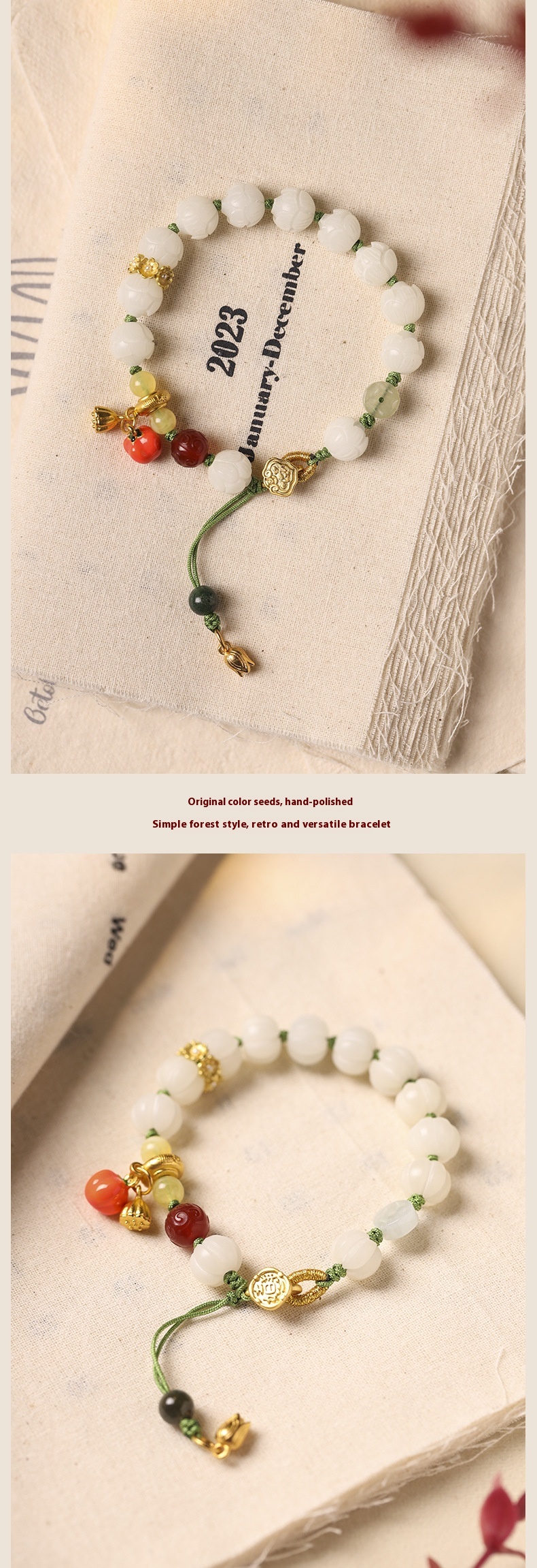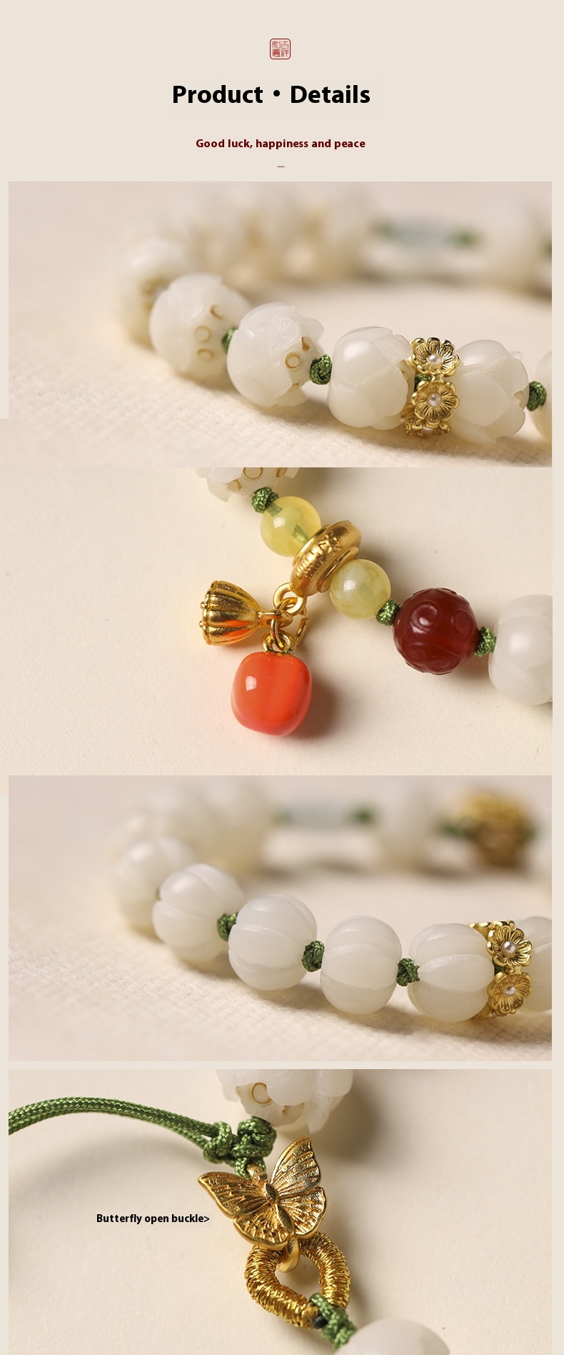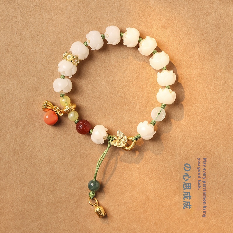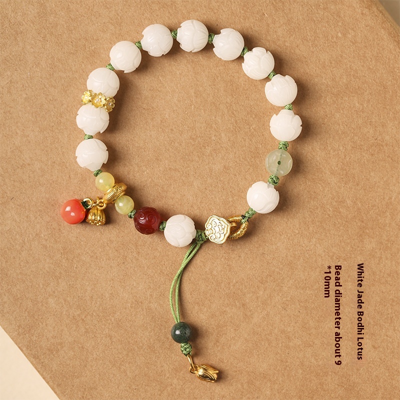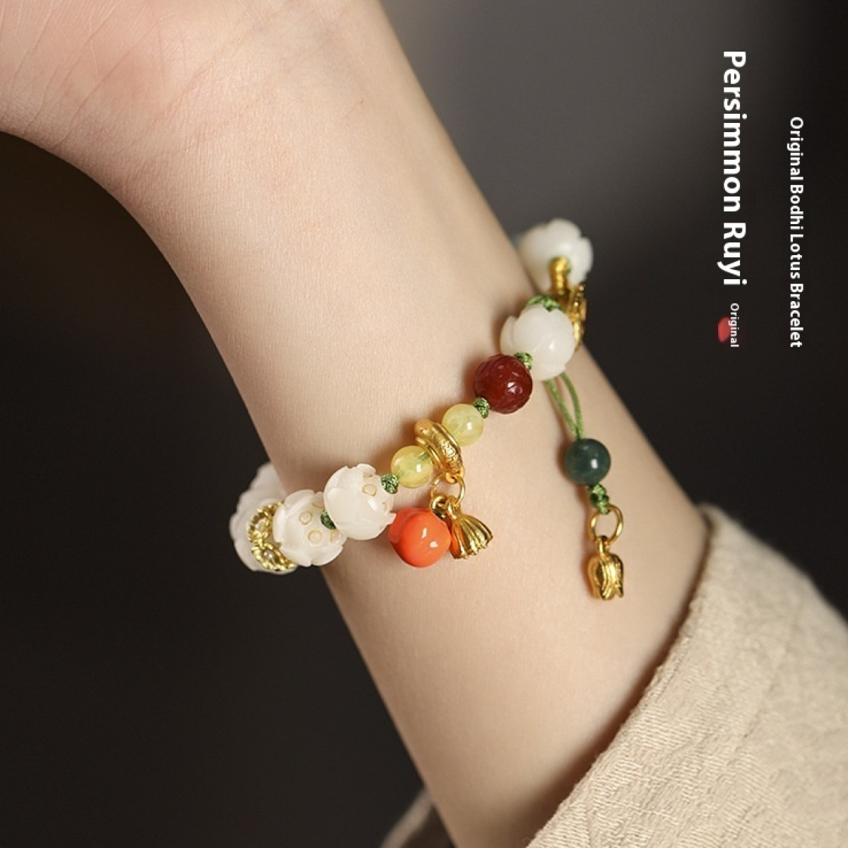 White Jade Bodhi Lucky Persimmon Single Ring Open Rope Bracelet