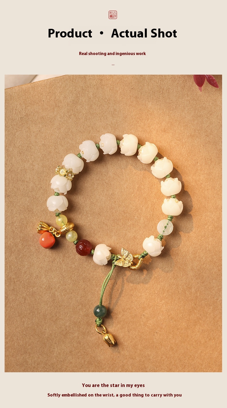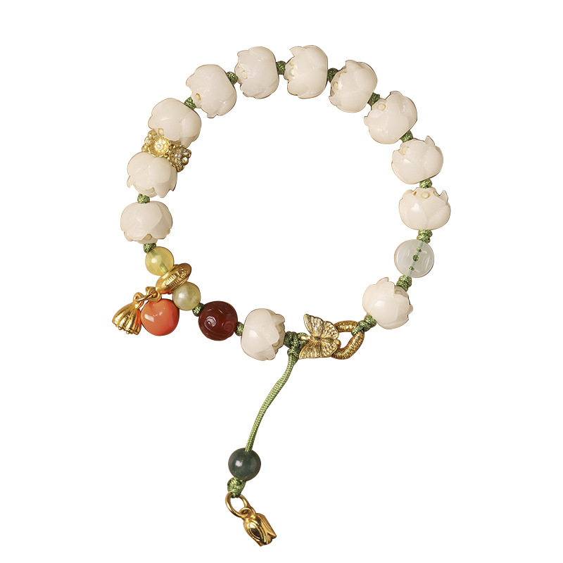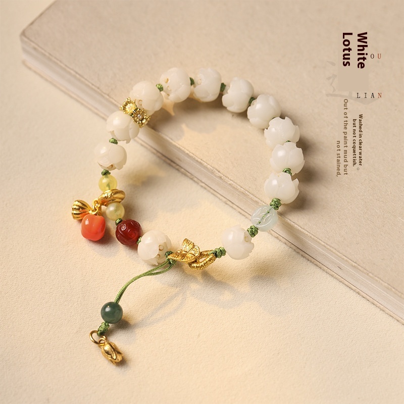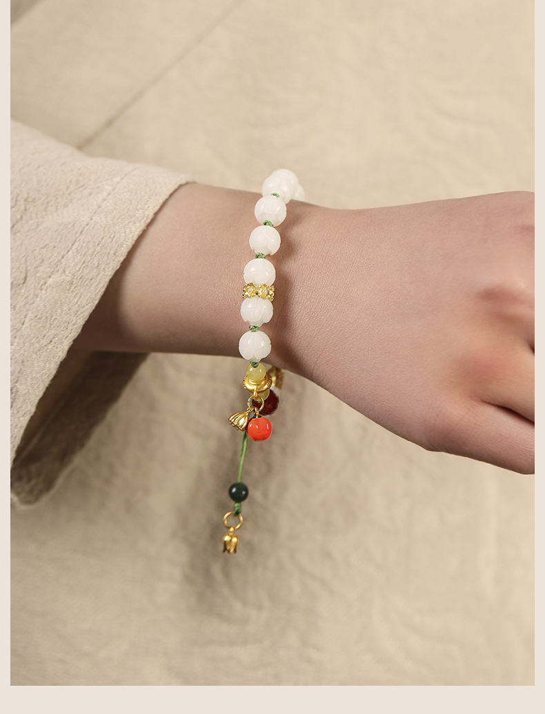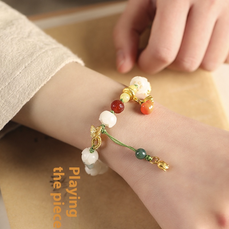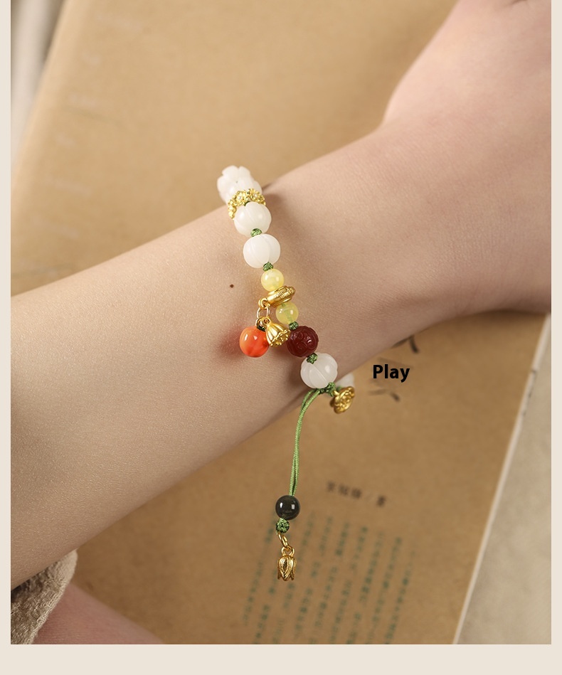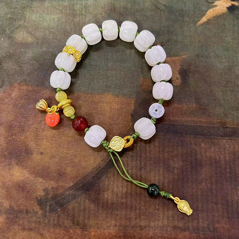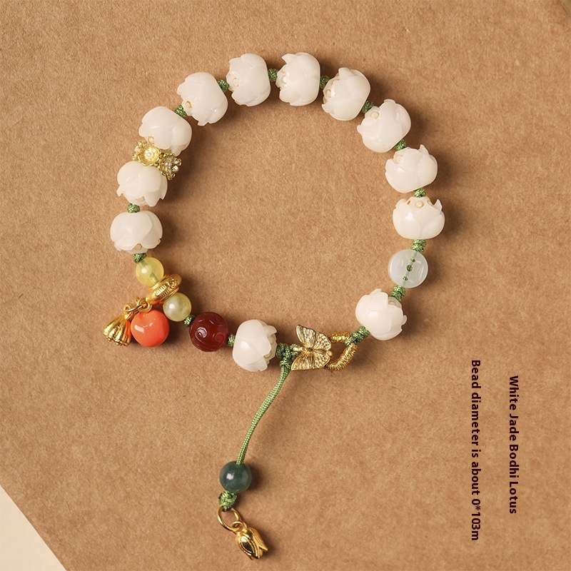 White Jade Bodhi Lucky Persimmon Single Ring Open Rope Bracelet