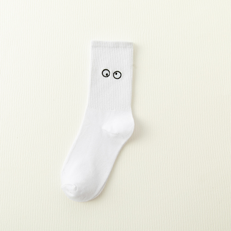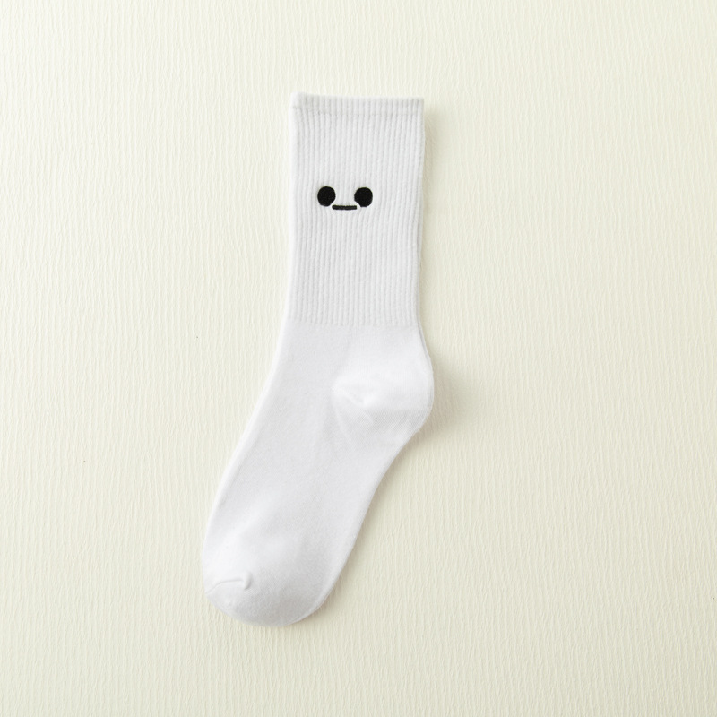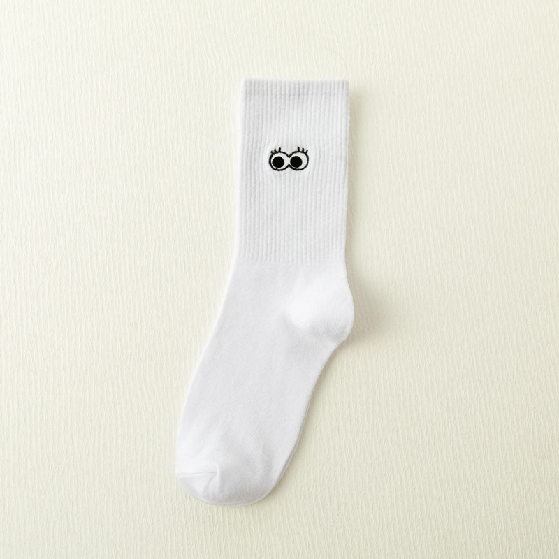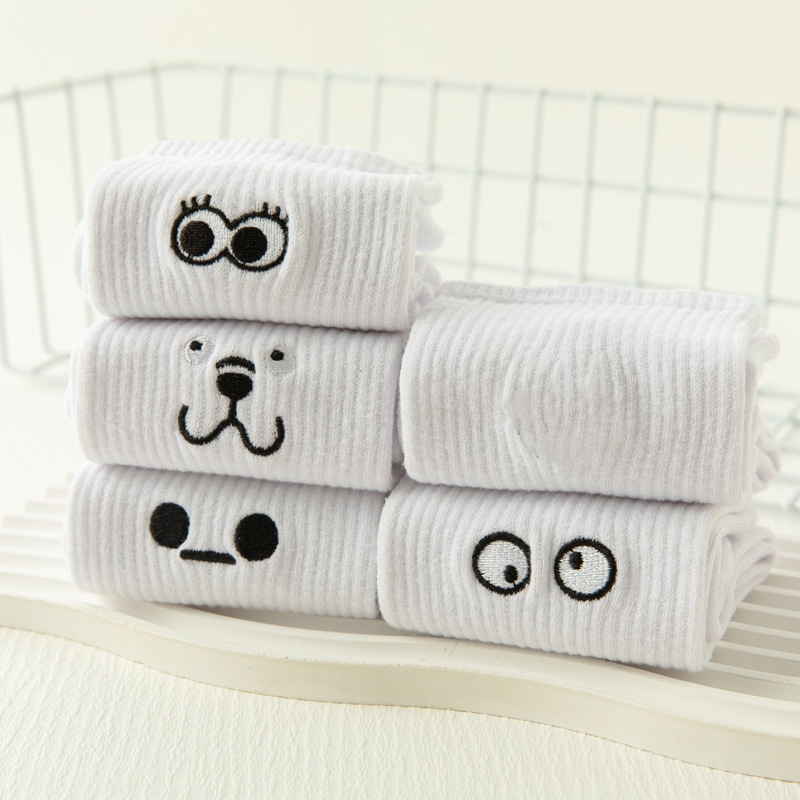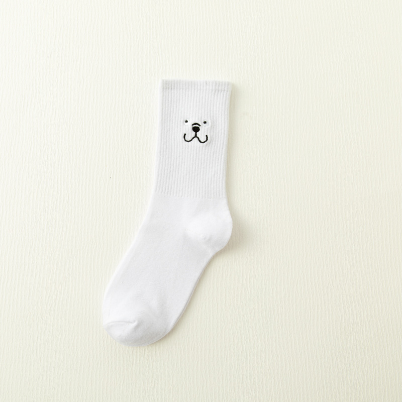 White Japanese Cartoon Embroidery Tube Socks