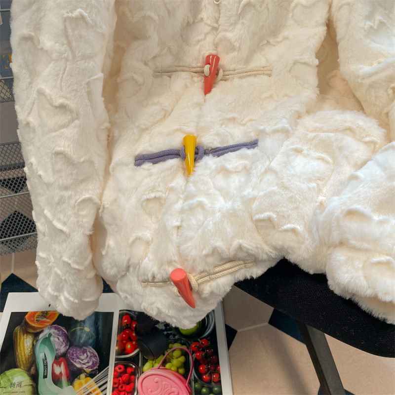 White Lamb Wool Coat For Women Thickened Short