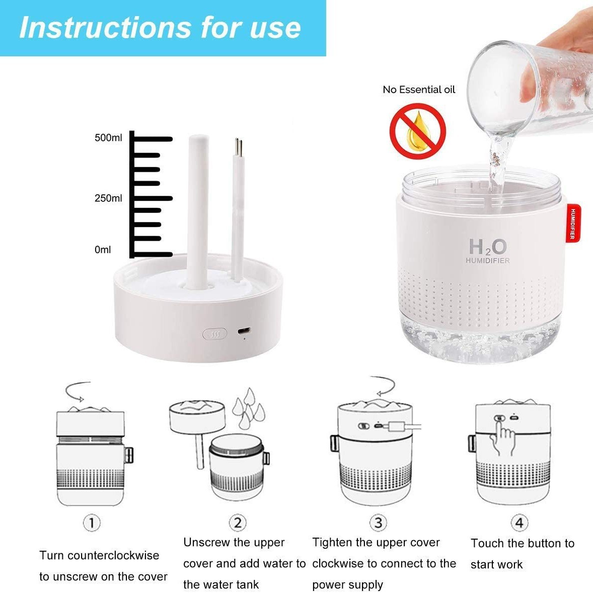 Elevate your space with our 500mL White LED Humidifier, designed for both functionality and style. Featuring a soothing warm yellow light mode and a second lighting setting, it creates a calming botanical mood while quietly moisturizing dry air. The 500mL large capacity tank ensures long-lasting hydration for bedrooms, offices, or yoga spaces. Its whisper-quiet operation makes it perfect for sleep or focused work, blending seamlessly into any modern decor with its clean white finish.