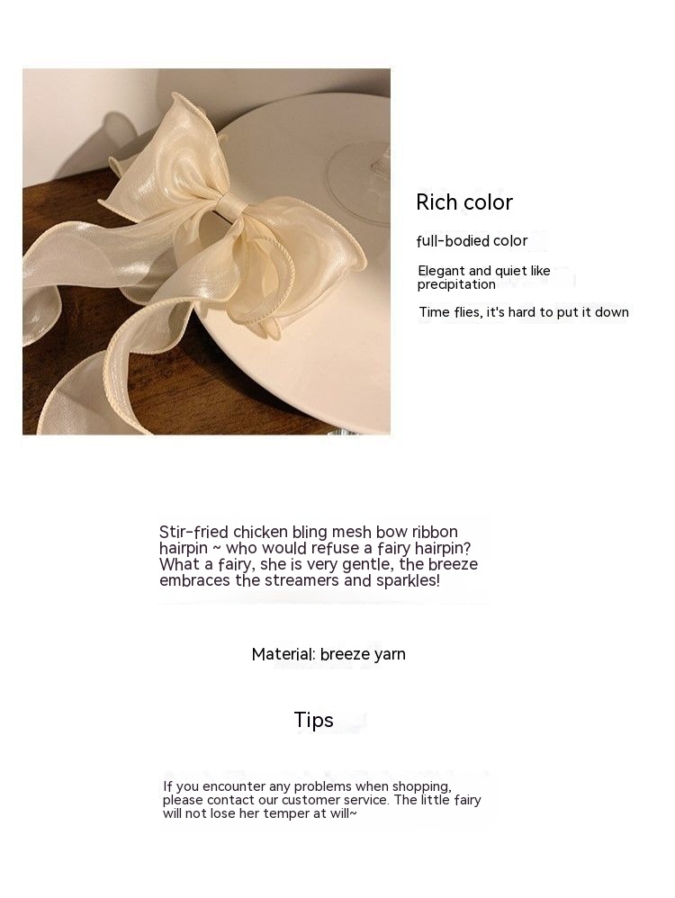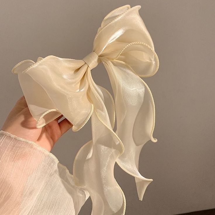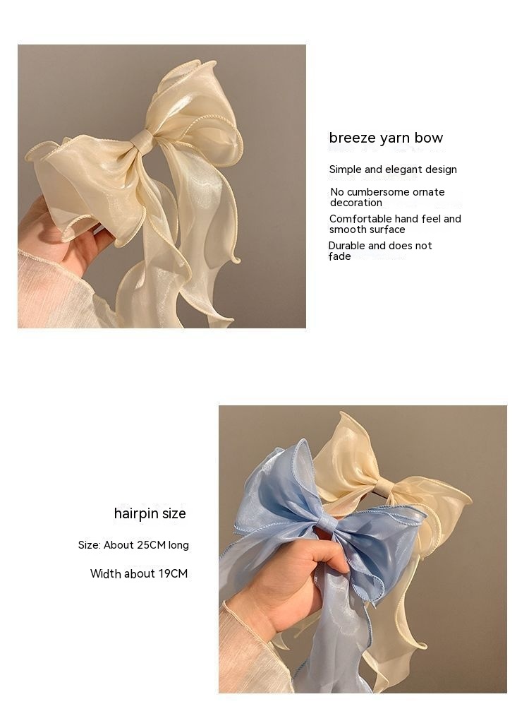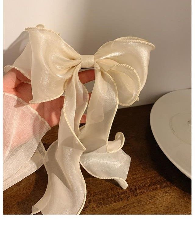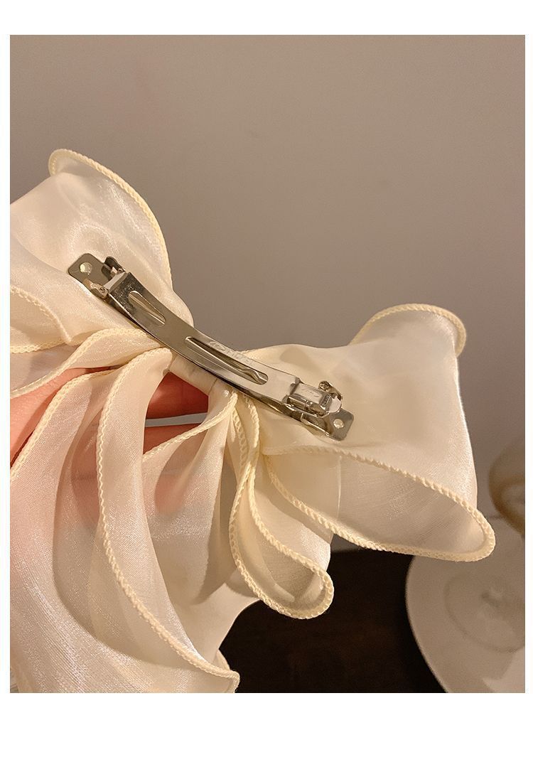 Color: organza bow spring clip a champagne color, organza bow spring clip a soft blue