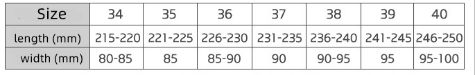 Sizes: 34,35,36,37,38,39,40,41,42