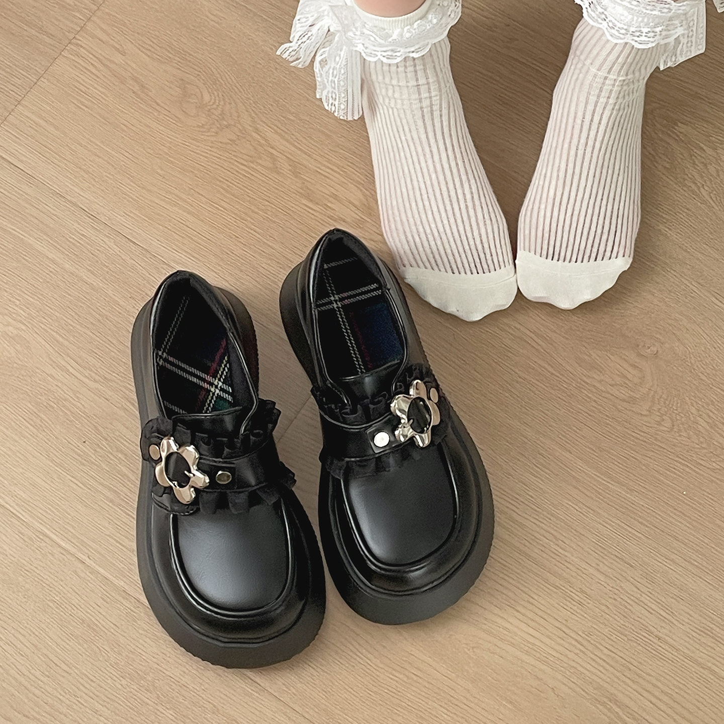 White Retro British Style Thick Soled High Rise Small Leather Shoes