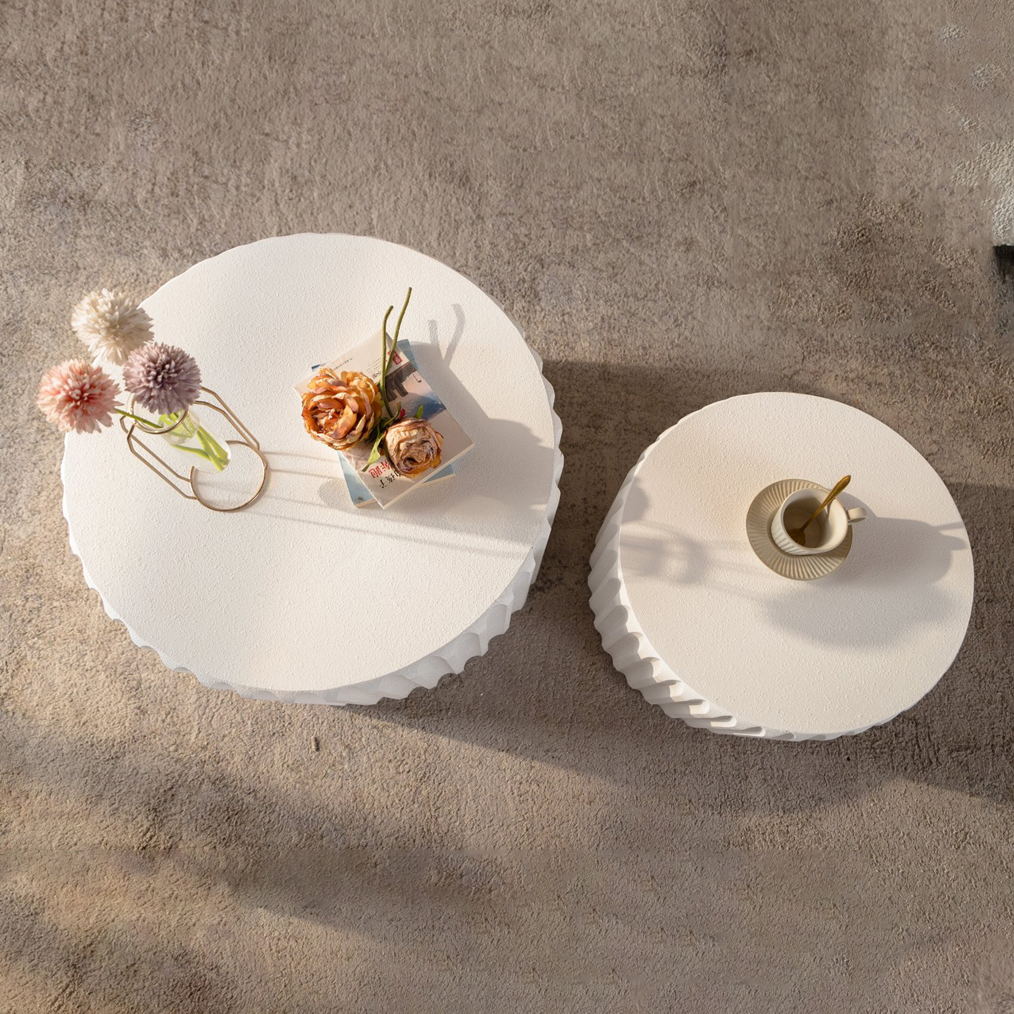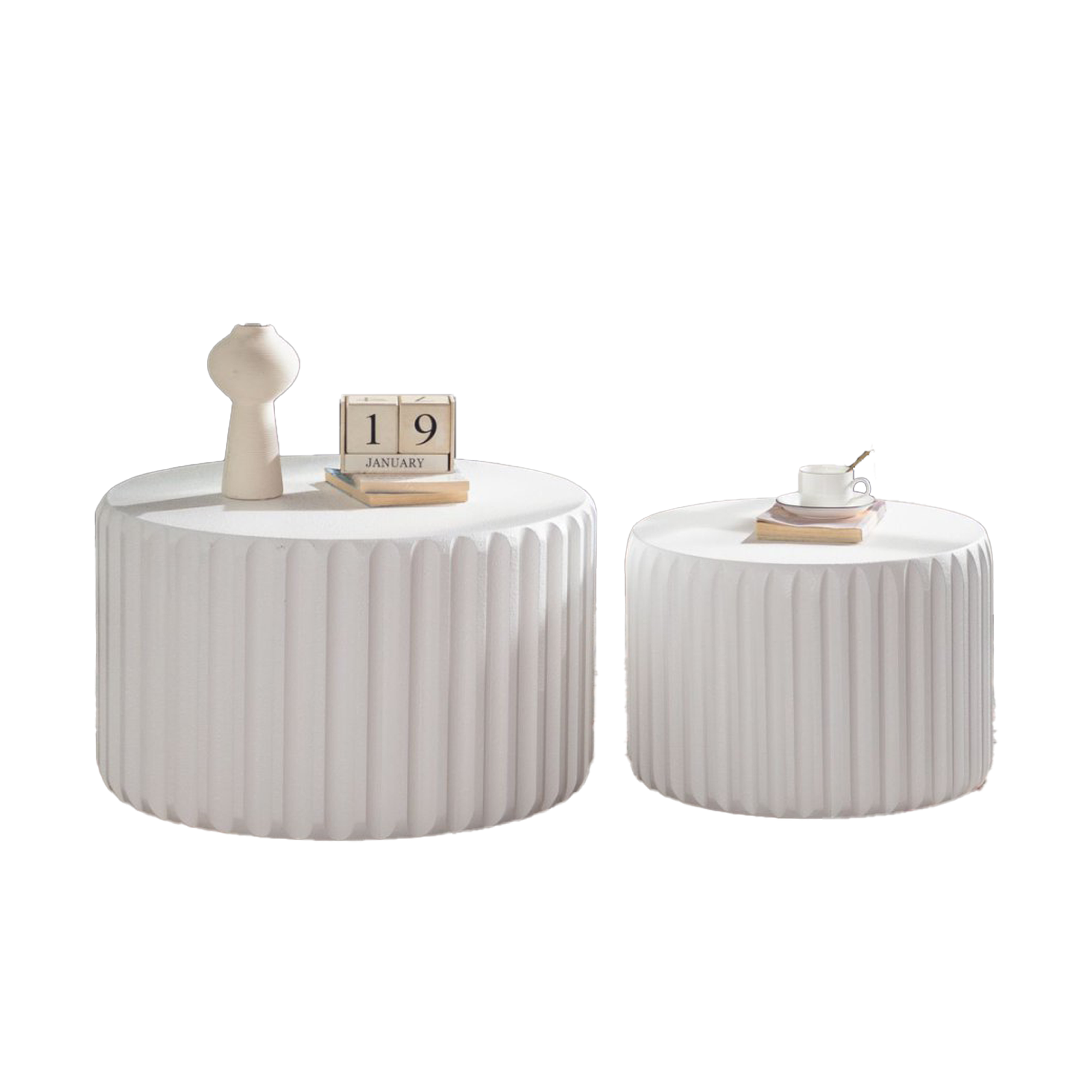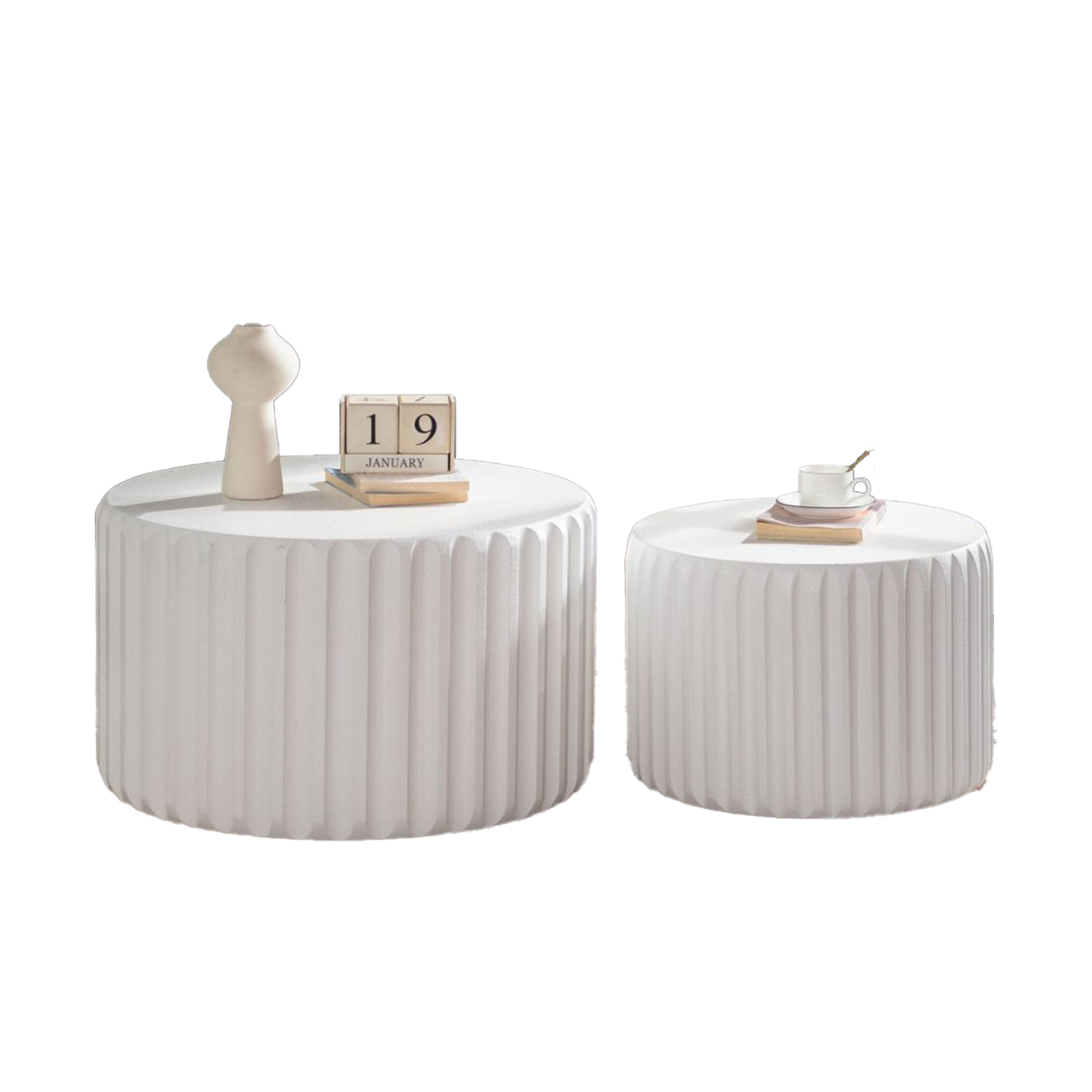 Product Name:White Scalloped Round Coffee Table Set: Nesting Design, Elegant Curved-Edge Shape for Cozy Living Room Styling