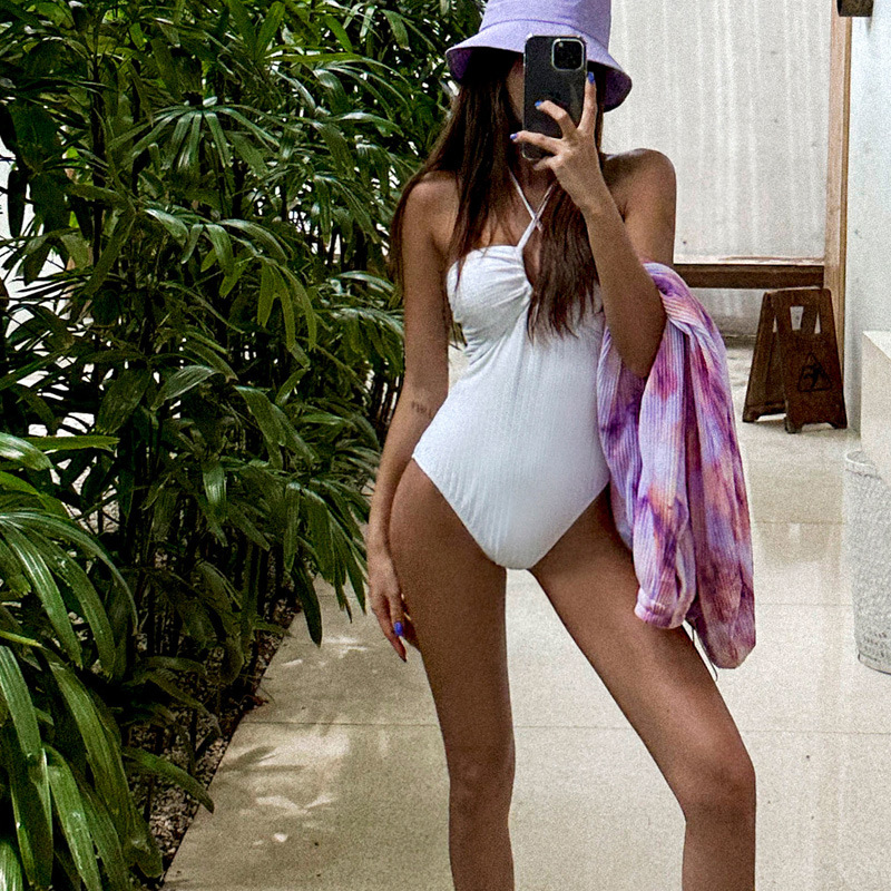 White Simple Hollow-out Women's Covering Belly Thin Slim Swimsuit Vacation Beach Bikini