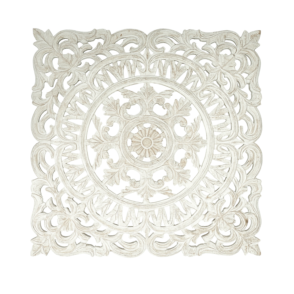 Product Name:White Square Shape Handcrafted Wooden Wall Decor – 36"x36" Elegant Home Accent