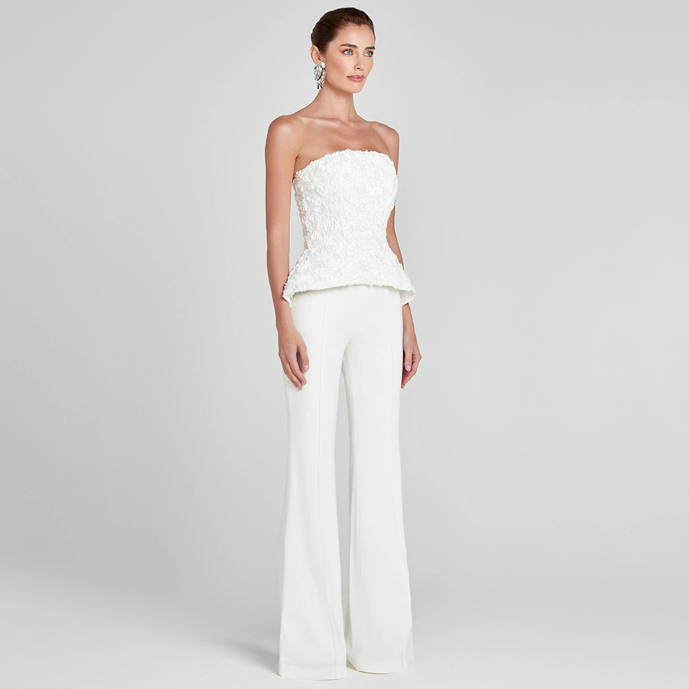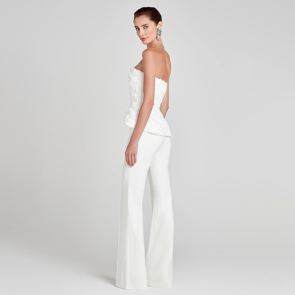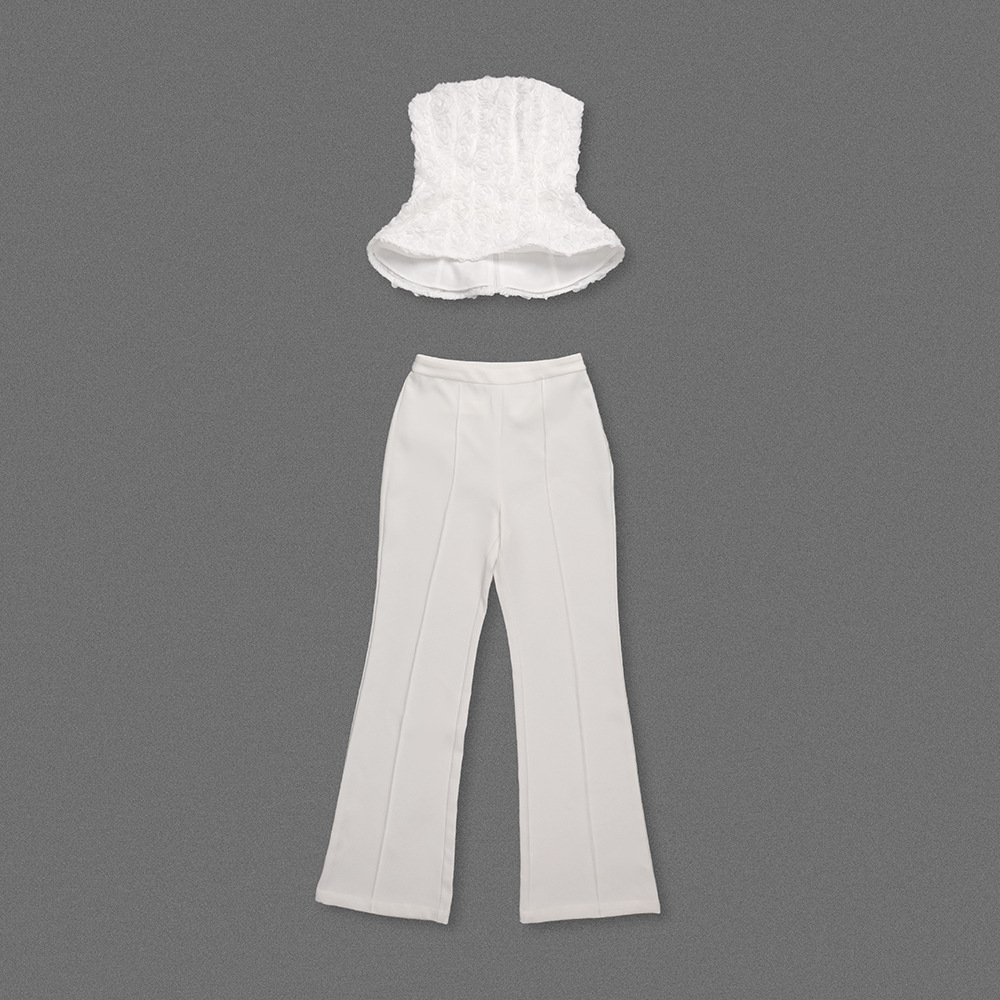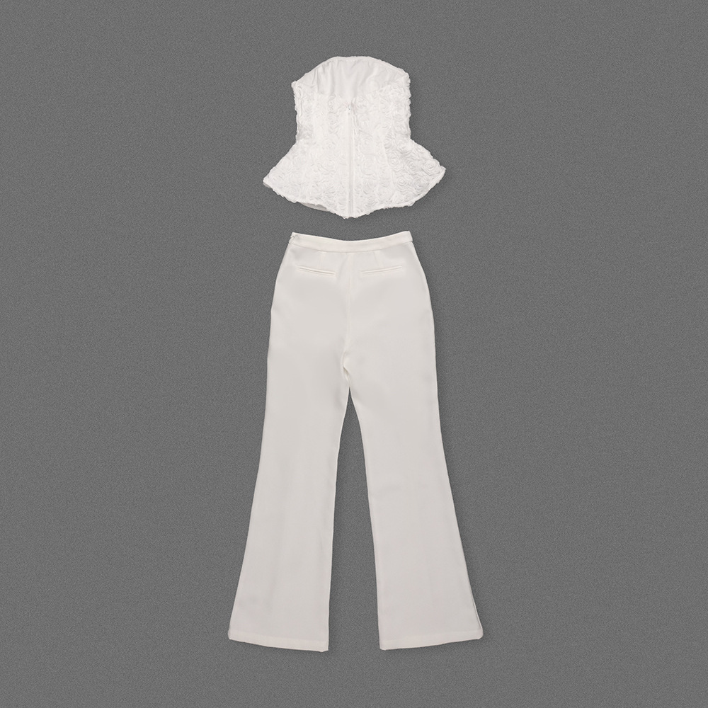 White Strapless Tank Top And High-waisted Trousers Womens Suit