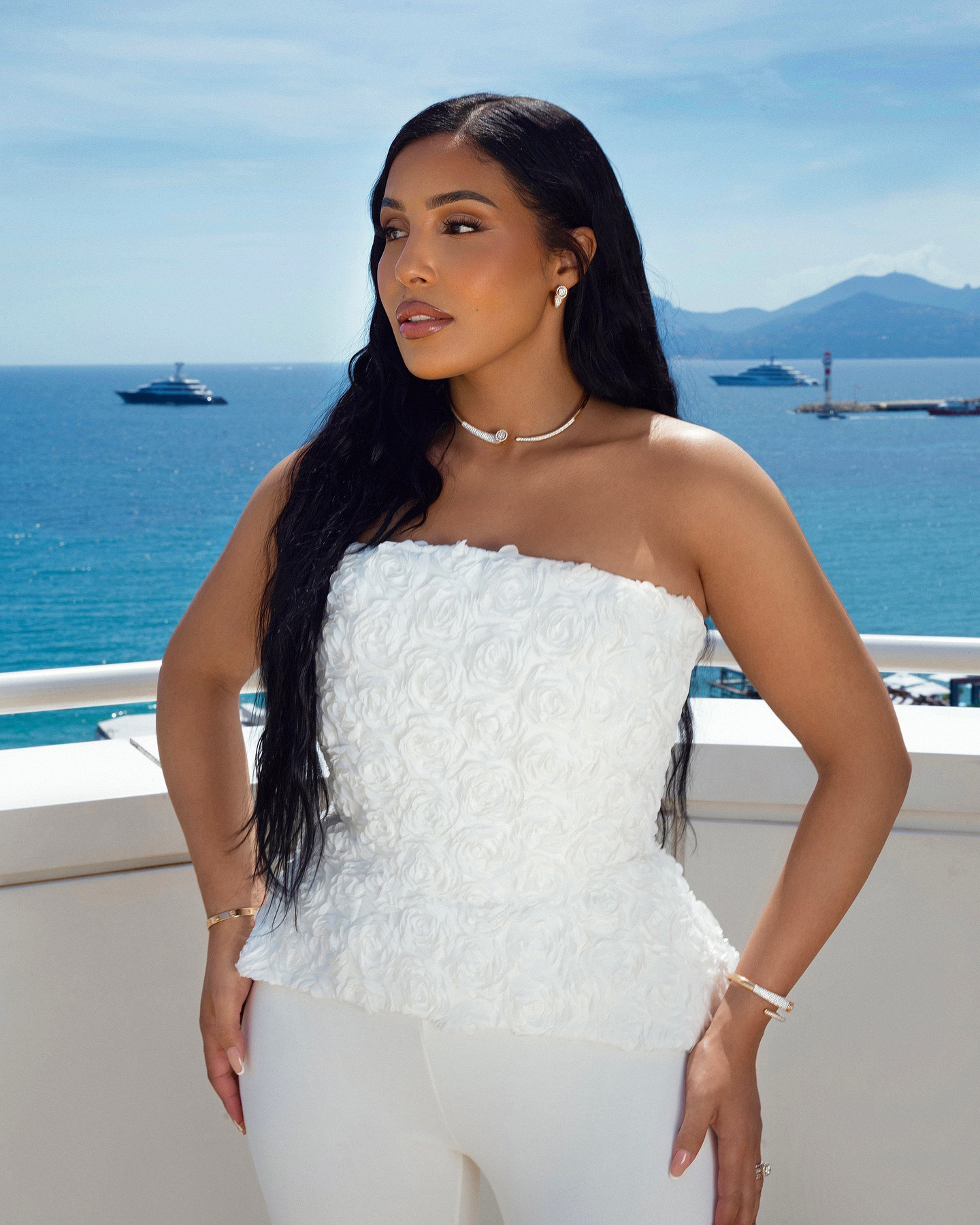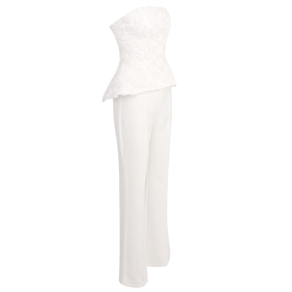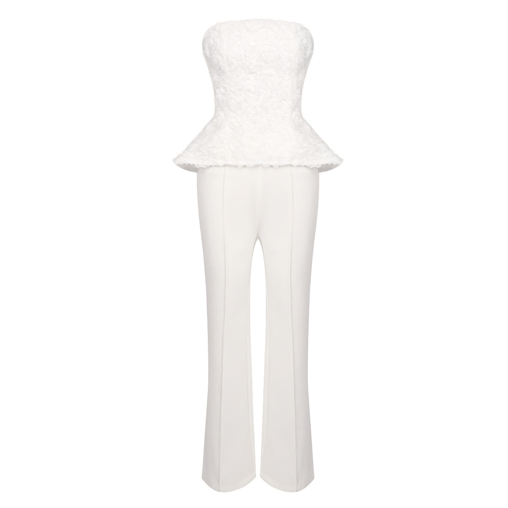 White Strapless Tank Top And High-waisted Trousers Womens Suit