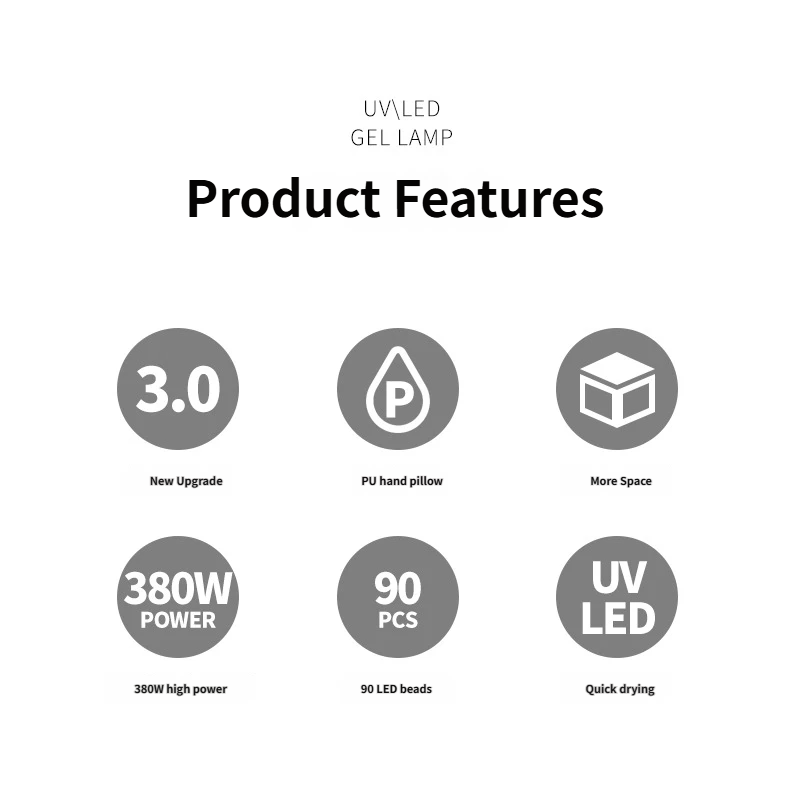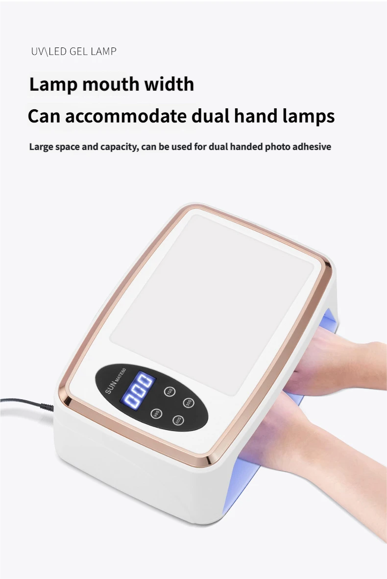 This white UV LED nail dryer is a must-have manicure tool for both home DIY and professional salon use, specially designed for fast and efficient curing of all gel nail polishes, builder gels and nail art decorations. With its sleek white appearance and compact structure, it saves desktop space while adding a minimalist aesthetic to your manicure area. The intelligent induction and timing functions make nail curing effortless, helping you achieve smudge-free, long-lasting salon-quality nail art in minutes without waiting for natural air drying.