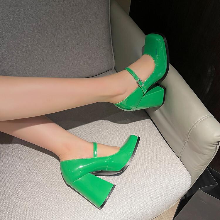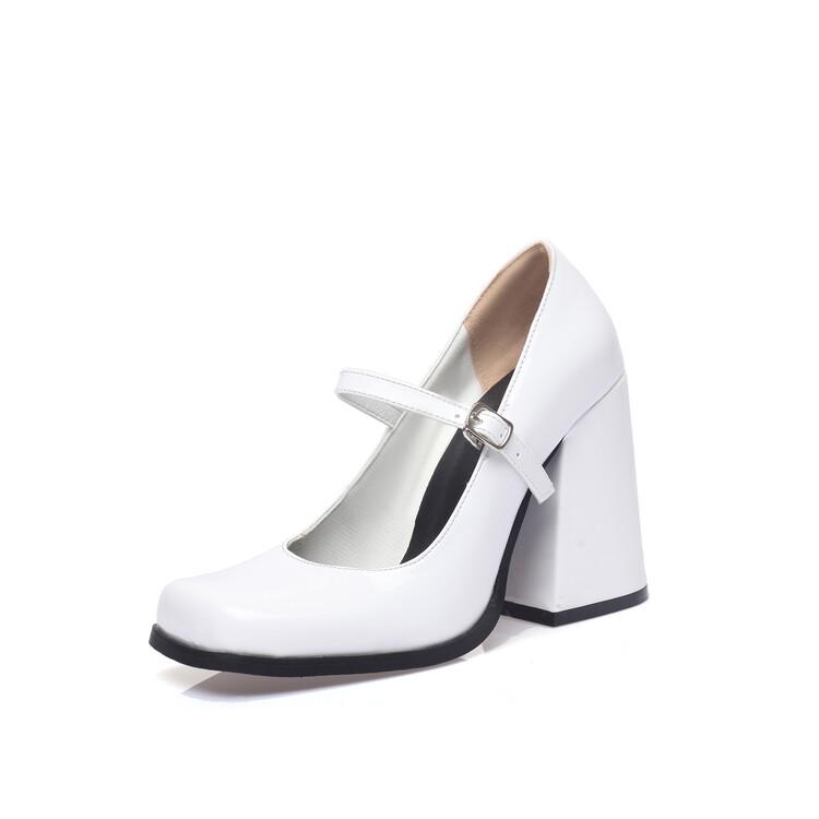 White Vintage Mary Jane Shoes High Heels Thick Soles