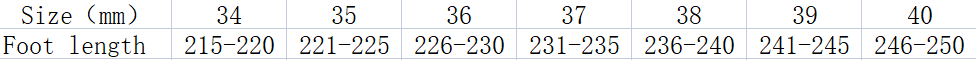 Size: 34, 35, 36, 37, 38, 39, 40, 41, 42