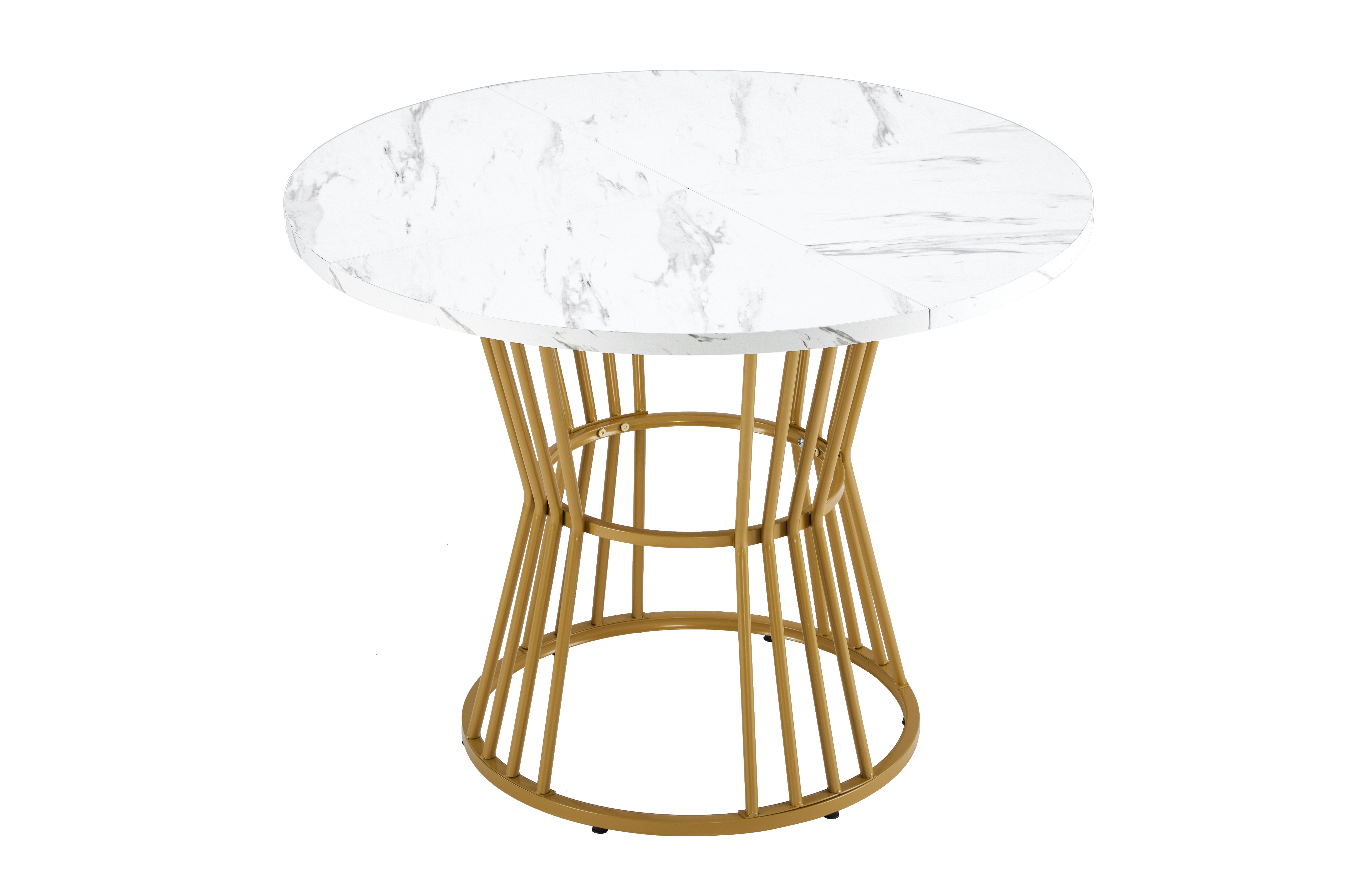 Product Name:White with Metal Leg (1 piece), Kitchen Table, Sturdy Metal Frame, Modern Marble or Dining Tables, Breakfast Table and Breakfast Table Restaurant, White/Gold
