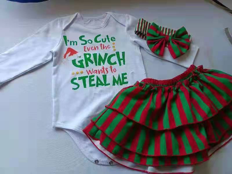 White With Printed Pattern Romper Red And Green Stripe Skirt Suit