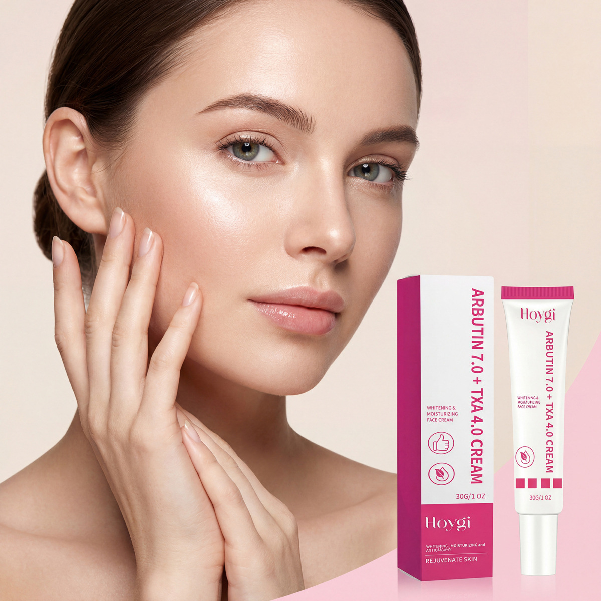 Ingredients: water, arbutin, mineral oil, glycerin, thrombotic acid, glyceryl stearate, 1,2- hexanediol, carbomer, arginine, allantoin, nicotinamide.