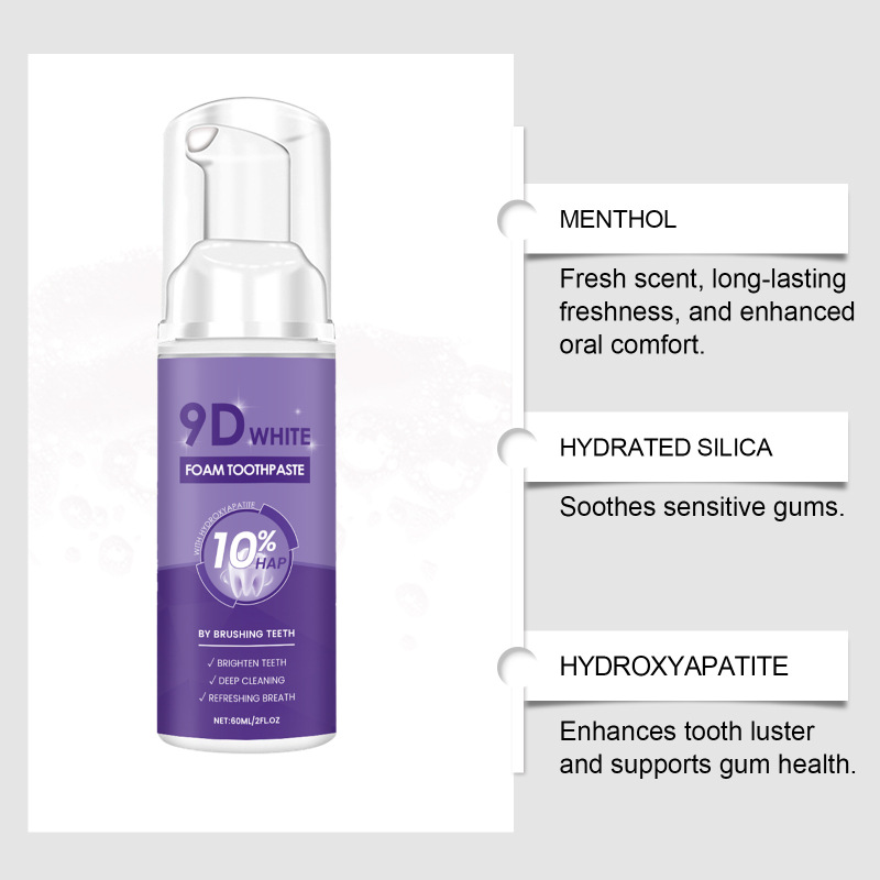 Ingredients: water, sorbitol, hydrated silica, hydroxyapatite, sodium bicarbonate, cellulose gum, decyl glucoside, menthol, aluminum hydroxide.