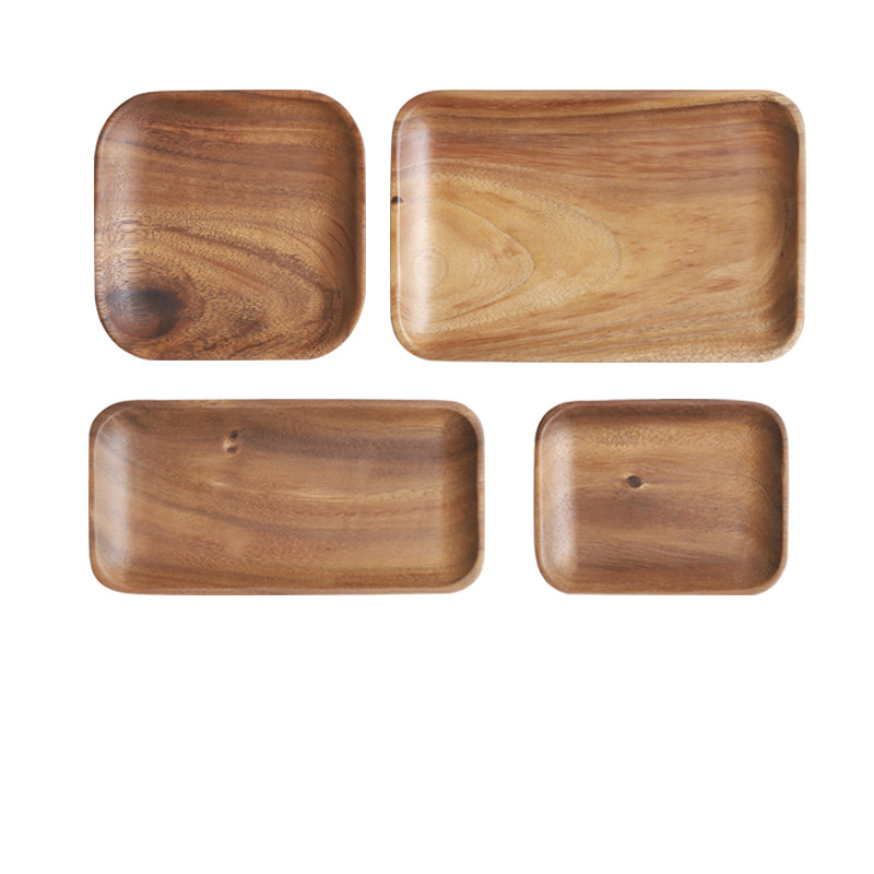 Material: woodMaterial: Philippine AcaciaType: Flat plate tea tablewareProcess: hand-polishedApplication: dinner plate, snack plate, snack plate