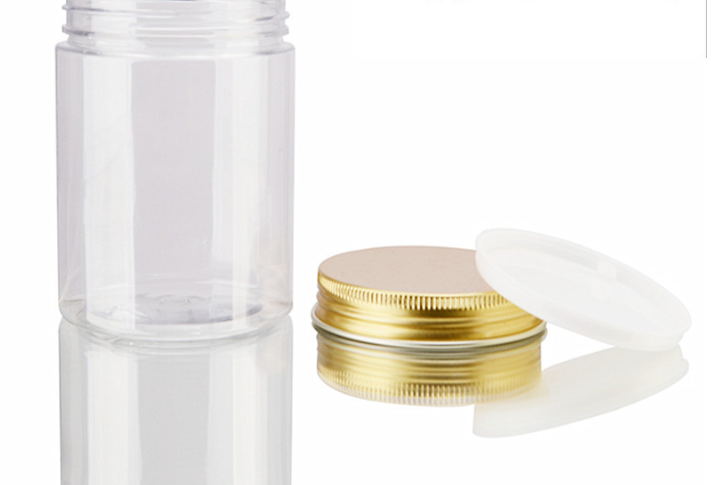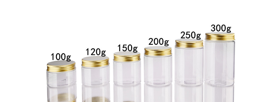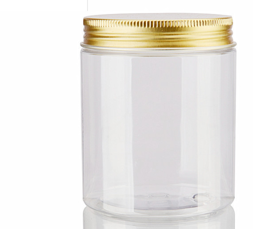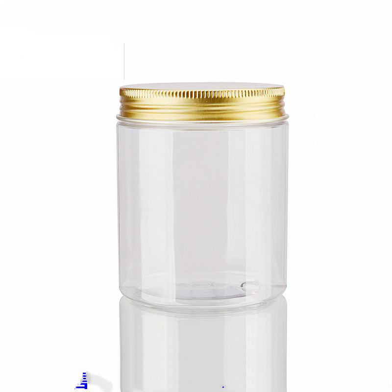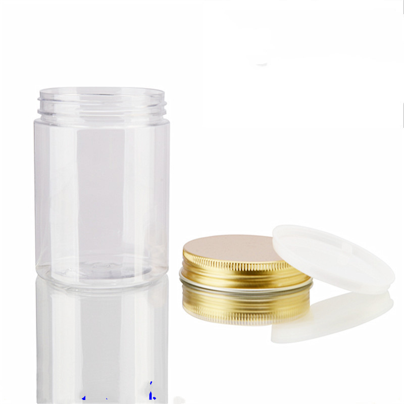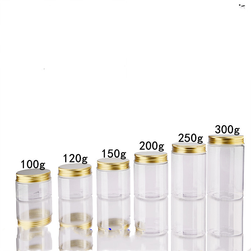 Wholesale food cans PET 300g golden aluminum lid transparent plastic wide mouth food bottles cosmetic sub-bottling bottles