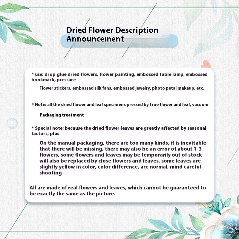 Specifications: 20 dried flower bags_40# winter lunar December, 20 dried flower bags_41# snow flying, 20 dried flower bags_42# hot sun, 20 dried flower bags_43# the sun blazing like a ball of fire, 20 dried flower bags_44# spring garden, 20 dried flower bags_45# birds and flowers, 20 dried flower bags_46# luxuriant branches and leaves, 20 dried flower bags_47# The autumn breeze is bleak, 20 dried flower bags_48# The grass flies long, 20 dried flower bags_49# The singing and dancing of Yingying, b6000 transparent glue large Three