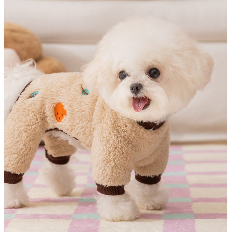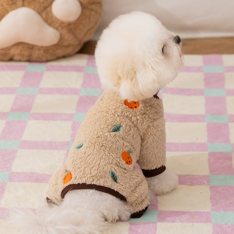 Keep your small dog snug and adorable with this Fruit Embroidered Fuzzy Pet Onesie! Available in two designs—beige with cheerful orange embroidery and gray with cute apple embroidery—each jumpsuit features ultra-soft, fuzzy fabric, ribbed cuffs for a snug fit, and playful fruit details. The plush material ensures warmth, while the whimsical orange and apple motifs add a fun, charming touch. Perfect for cold days or indoor lounging, this onesie combines coziness, cuteness, and a fruity aesthetic, making it a must-have for pet parents who want their furry companions to stay stylishly warm and irresistibly adorable.